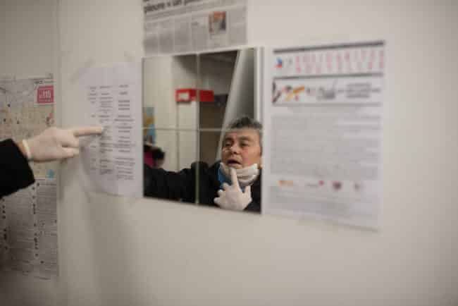 Le personnel du secours populaire aidé également par les réceptionnitstes des hotels mobilisés, permettent de conserver ce lien avec des personnes.
