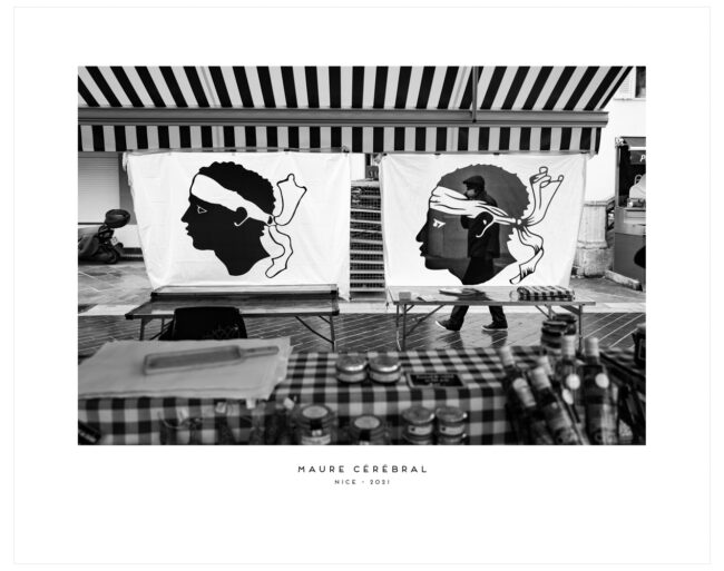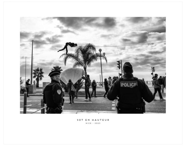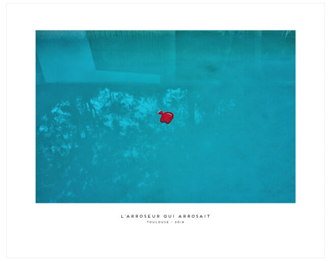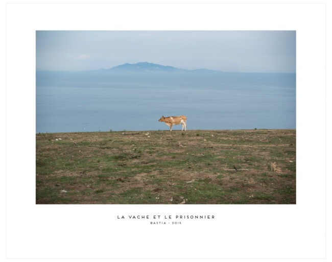 « En m’appuyant sur des références propres à notre culture commune, je cherche à créer une tension entre le réel et sa représentation, en provoquant une ambiguïté et une distorsion. Chaque titre est un point d’ancrage pour entrer dans un univers fugace comme une fête foraine de l’incidentel entre vacuité, absurdité, poésie et dérision du monde qui nous entoure. Le lieu est un indicateur bien sûr : devant la photo La Vache et le prisonnier, si on ne sait pas que c’est à Bastia, on ne comprend pas. Et même le lisant, on ne sait pas forcément le fait de l’histoire lié à Napoléon. »