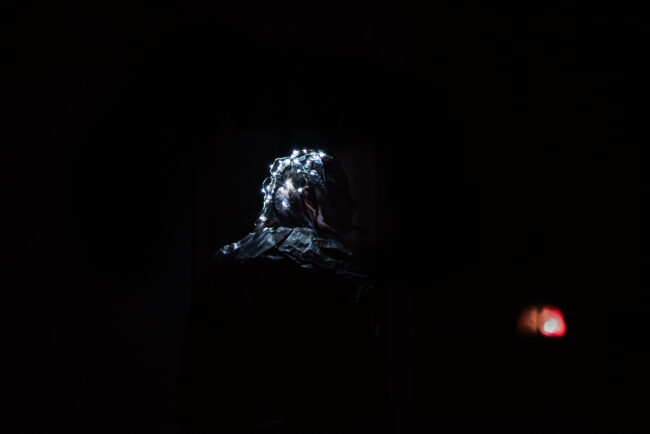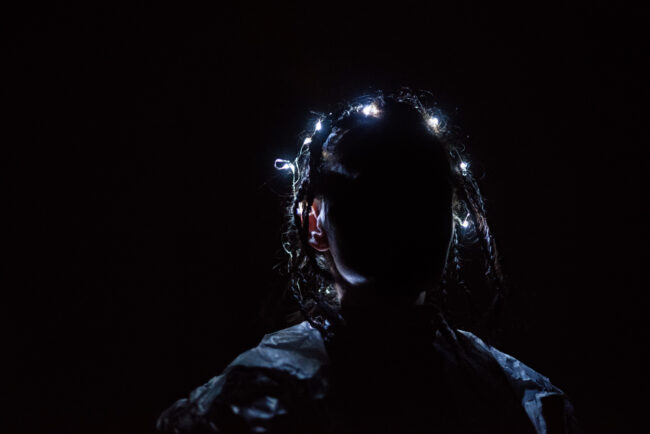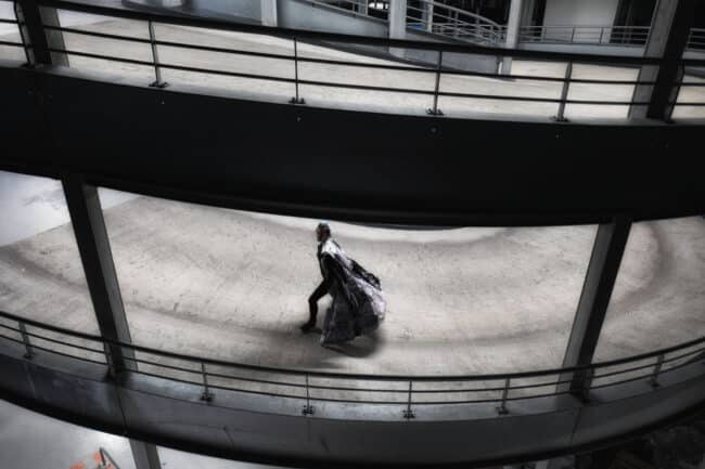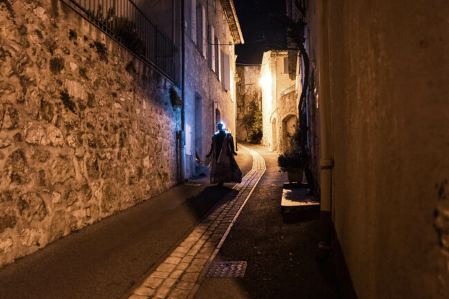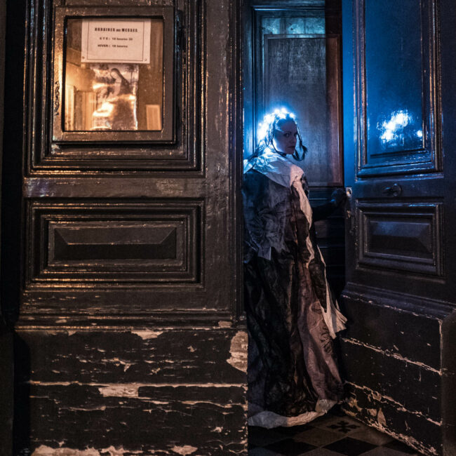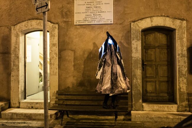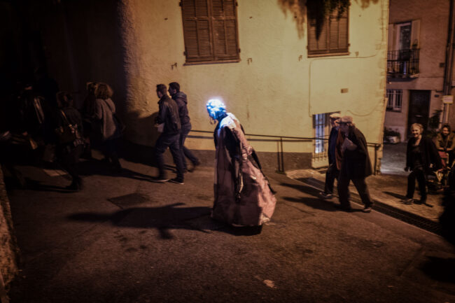 Un miracle qui perce les ombres du passé comme du futur.Une double projection.ElleTraverse,Comme un leurre,Elle,à part,Elle,S’inscrit dans l’espace et dans le temps.Une distorsion,Une lueur,Une partition dans la ville.Elle éclaire.Fantomatique,La foule visible ou invisible,Tel un phare,Elle donne un éclairage,Un certain regard,Des variations, des irisations.Voulons nous tout voir ?Qui voit tout, dans cet entre deux entre le visible et l’invisible ?Que pouvons nous désirer ou supporter de voir ?