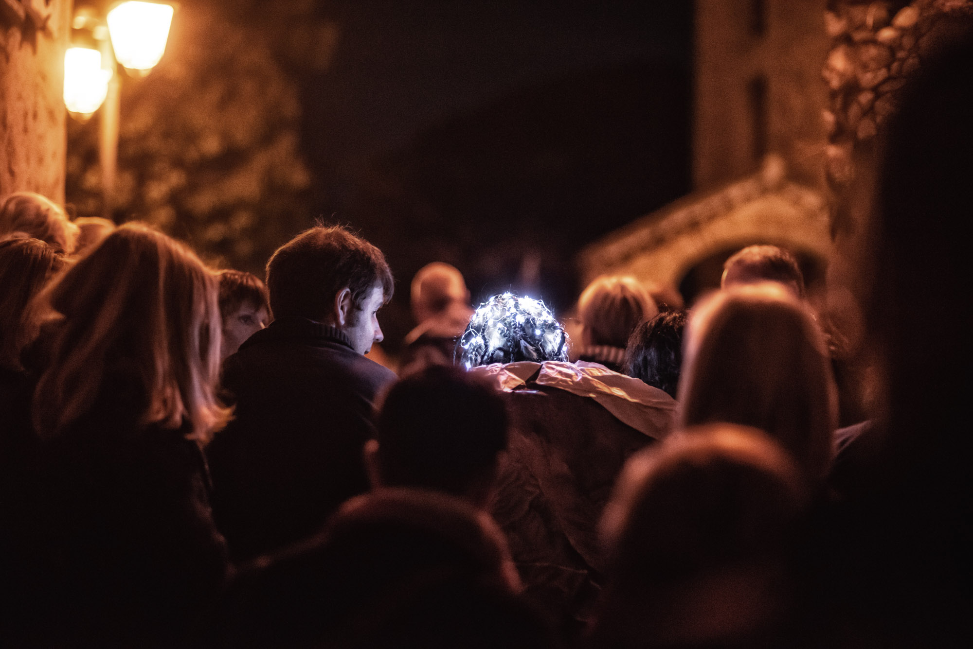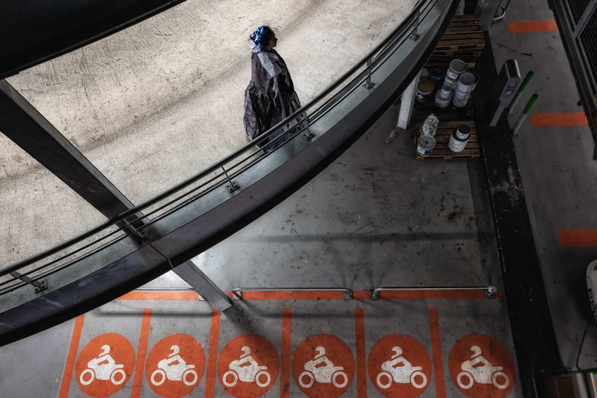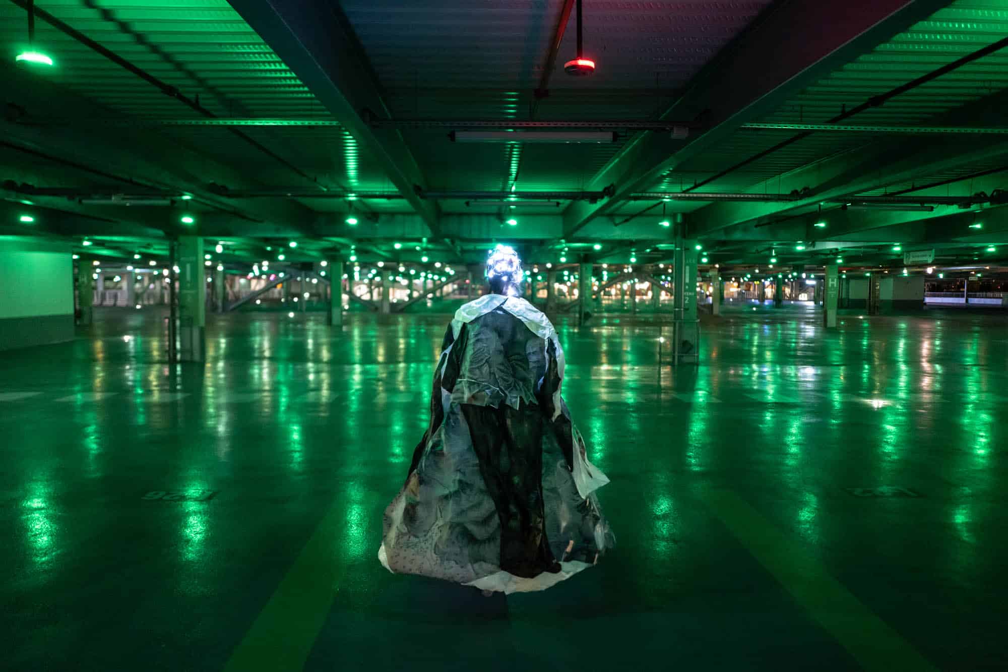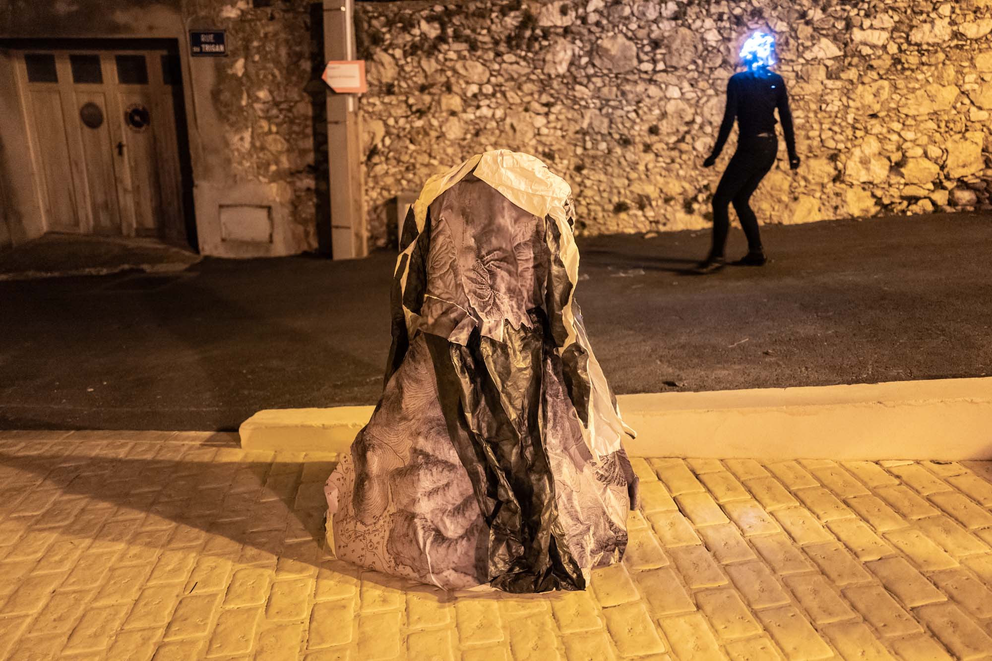 Un miracle qui perce les ombres du passé comme du futur.Une double projection.ElleTraverse,Comme un leurre,Elle,à part,Elle,S’inscrit dans l’espace et dans le temps.Une distorsion,Une lueur,Une partition dans la ville.Elle éclaire.Fantomatique,La foule visible ou invisible,Tel un phare,Elle donne un éclairage,Un certain regard,Des variations, des irisations.Voulons nous tout voir ?Qui voit tout, dans cet entre deux entre le visible et l’invisible ?Que pouvons nous désirer ou supporter de voir ?