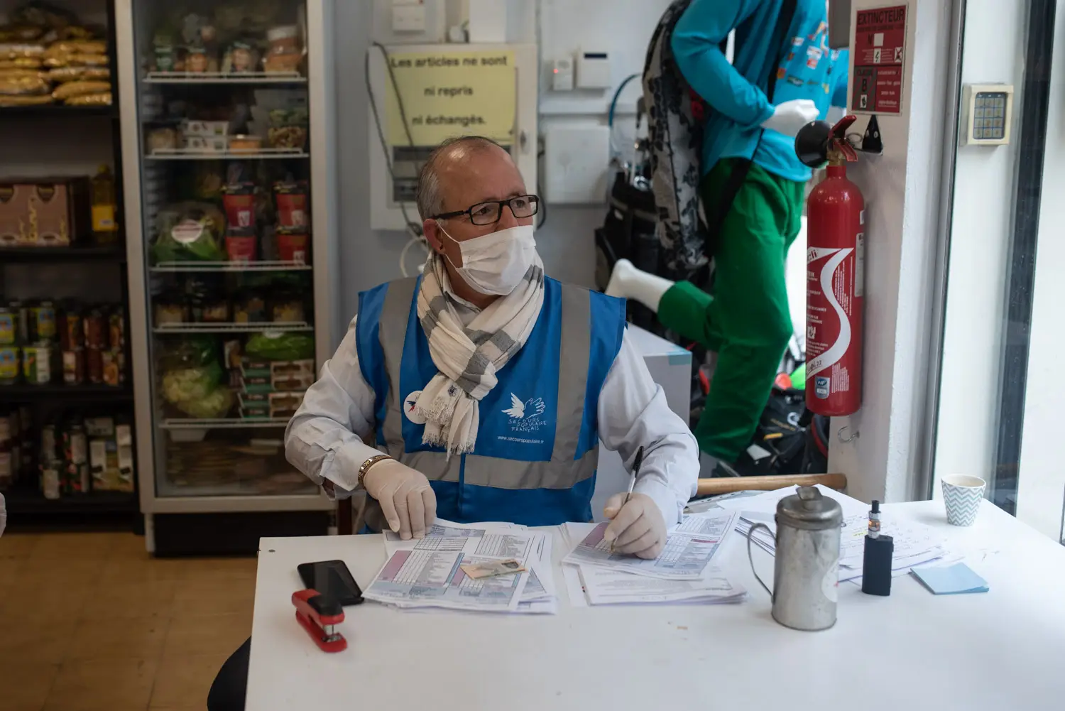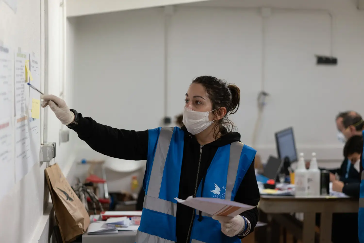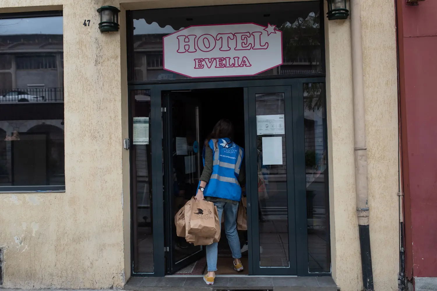 Le personnel du secours populaire aidé également par les réceptionnitstes des hotels mobilisés, permettent de conserver ce lien avec des personnes.