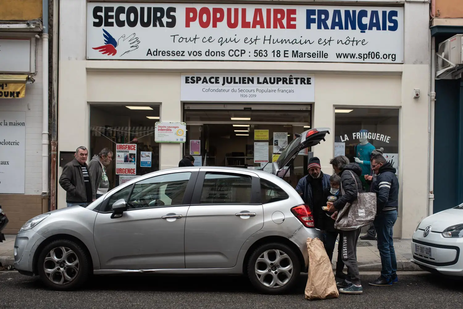La nourriture est ensuite acheminée par les véhicules du secours populaire et ceux des bénévoles qui effectuent un travail tres efficace.