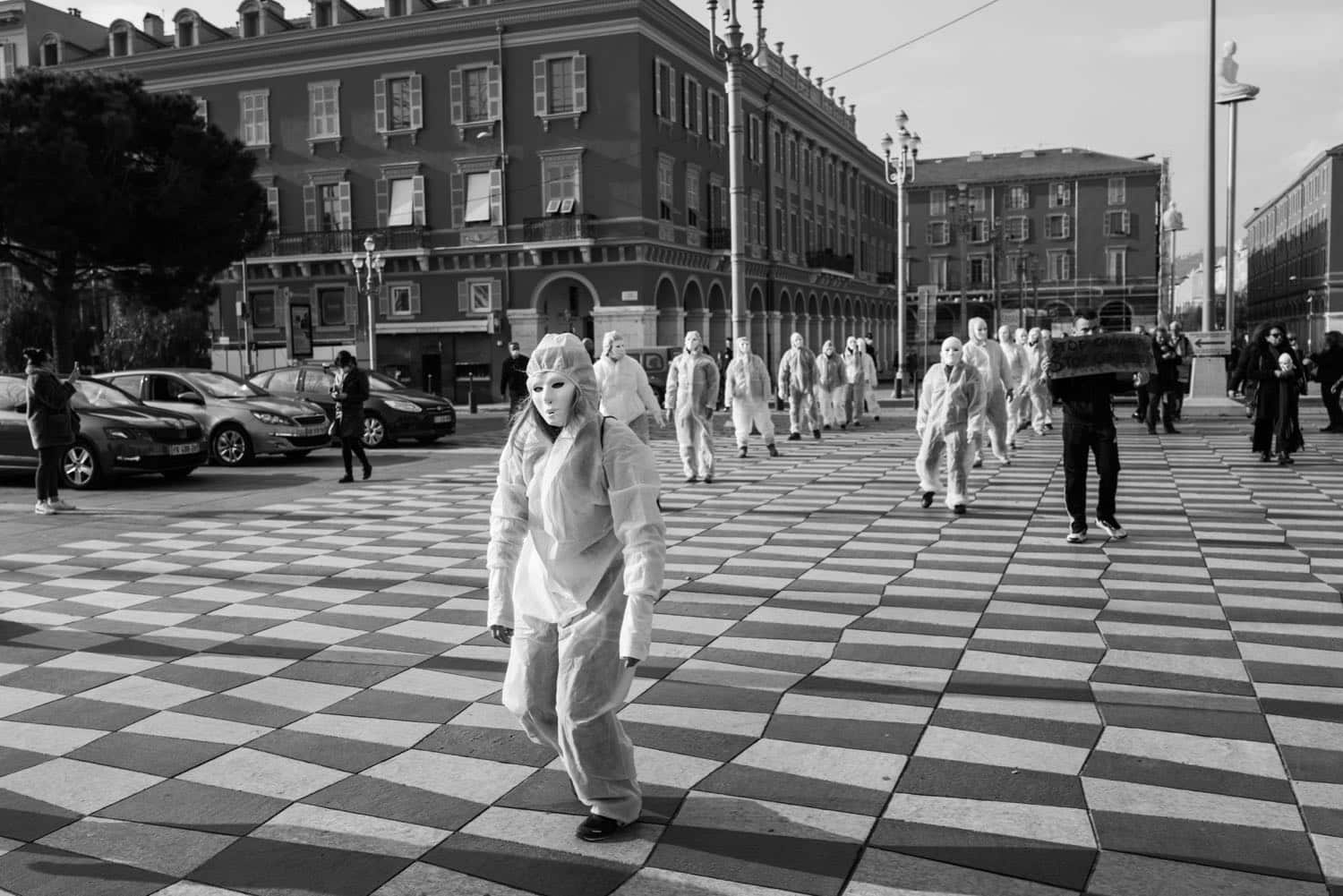 Une procession inquiétante et mystérieuse se déroule dans les rues de Nice depuis le début de la crise sanitaire. Des messages scandés grace à un porte voix ordonne à la population de rester chez elle, de se laver les mains et surtout de bien suivre les consignes !