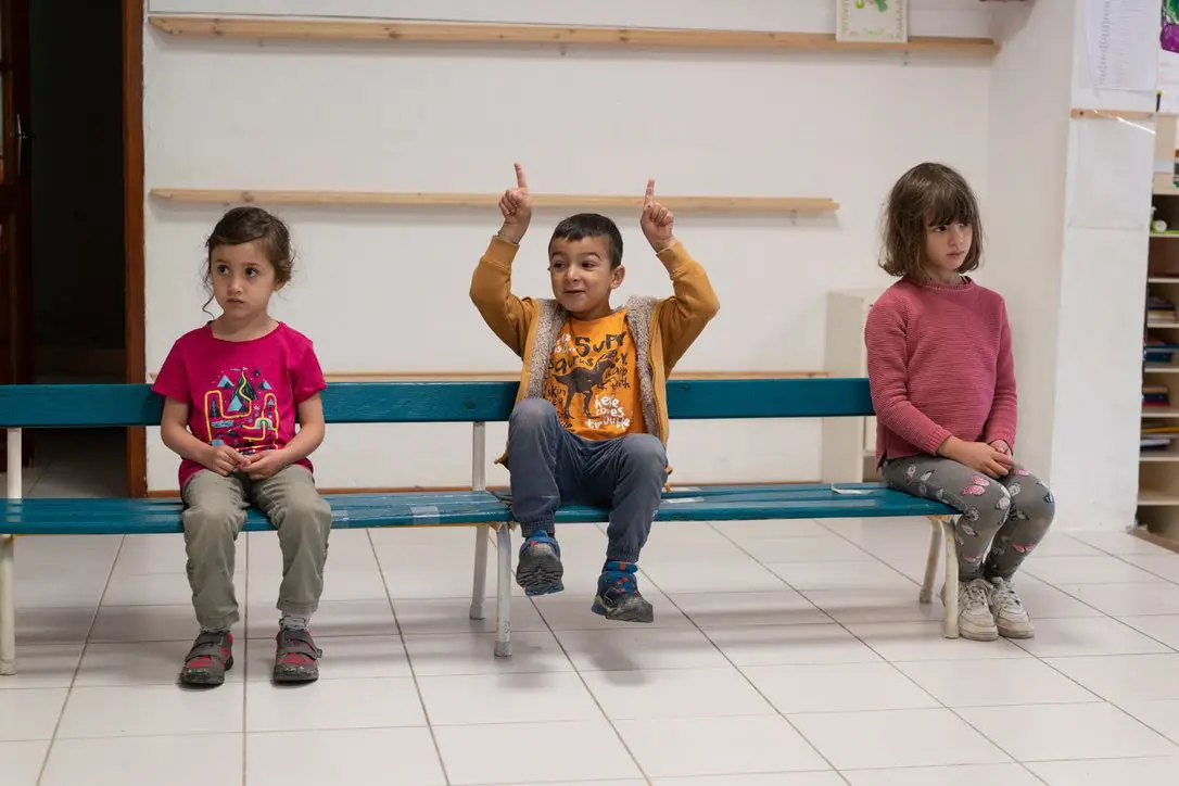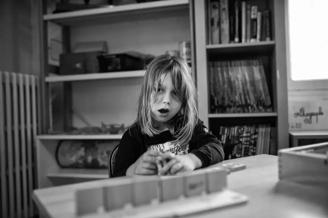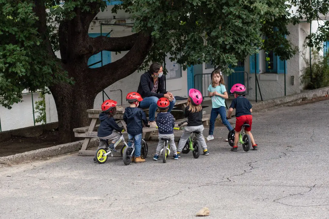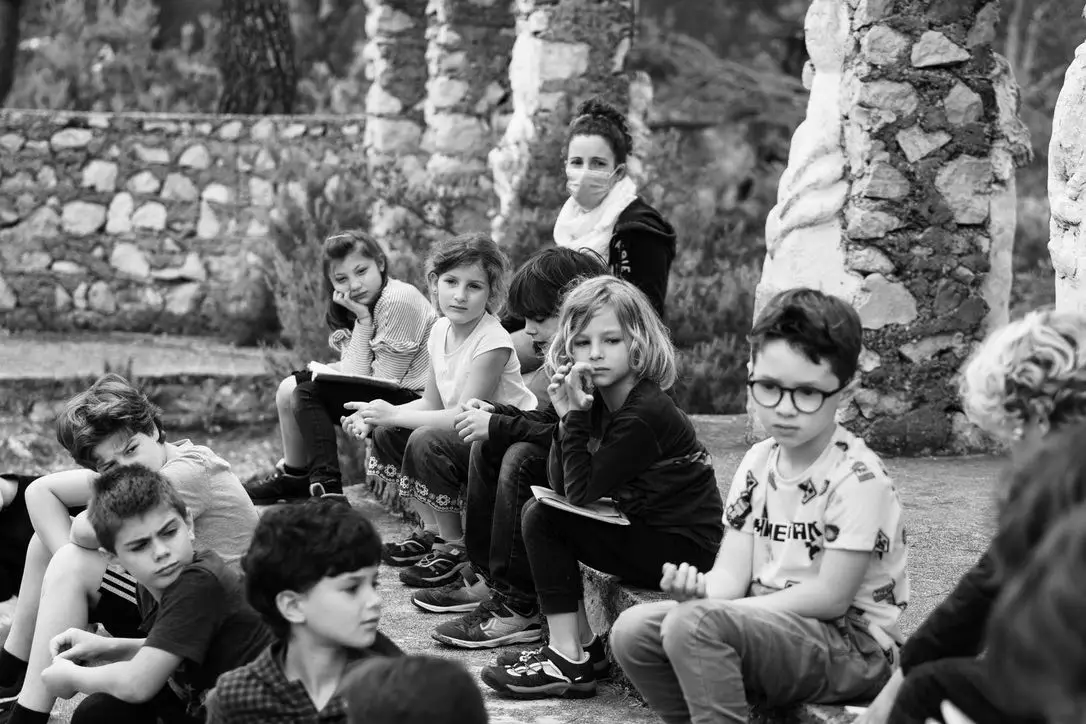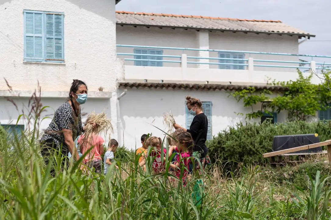 Les enfants de 3 à 10 ans établissent leurs journées comme ils ont l’habitude de le faire : Ils choisent les activités qu’ils ont envie de pratiquer. Ils présentent devant tous leurs camarades leurs poésies, le travail de la veille, une découverte faite durant le week end? dans l’amphitheatre à ciel ouvert ou sur la terrasse panoramique qui domine les montagnes. Les plus petits ont droit, comme toutes les semaines d’intervenir sur le potager de l’école ou Marie Paule les initie aux semances plantées et aux premières récoltes.