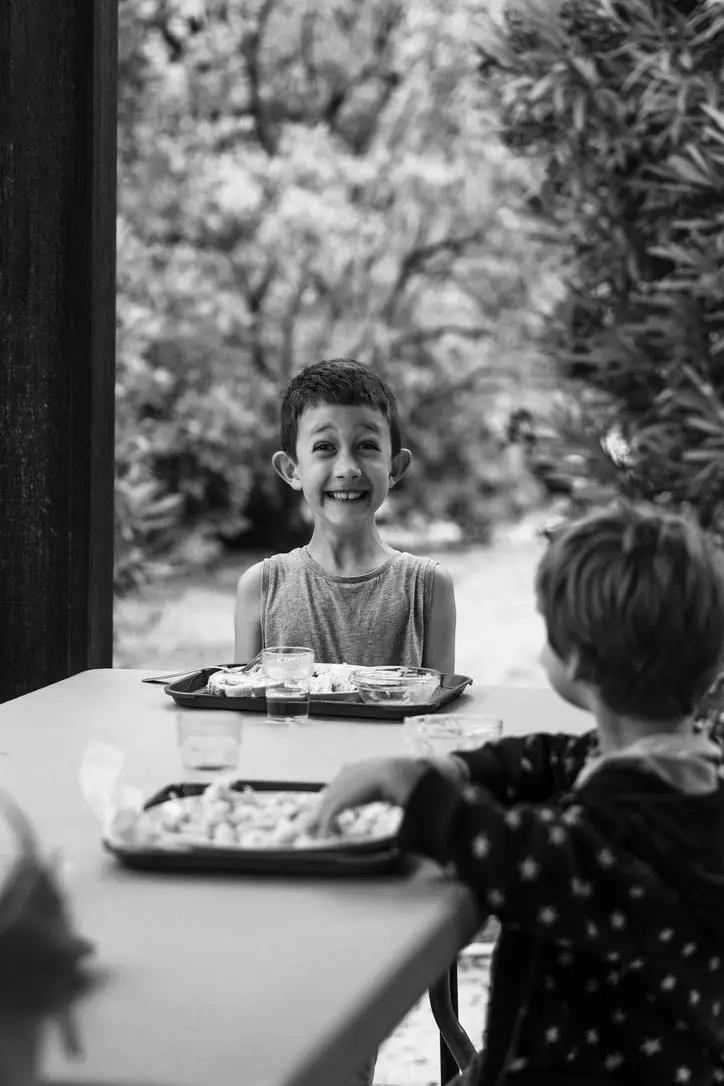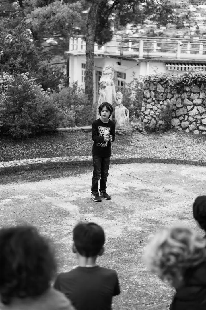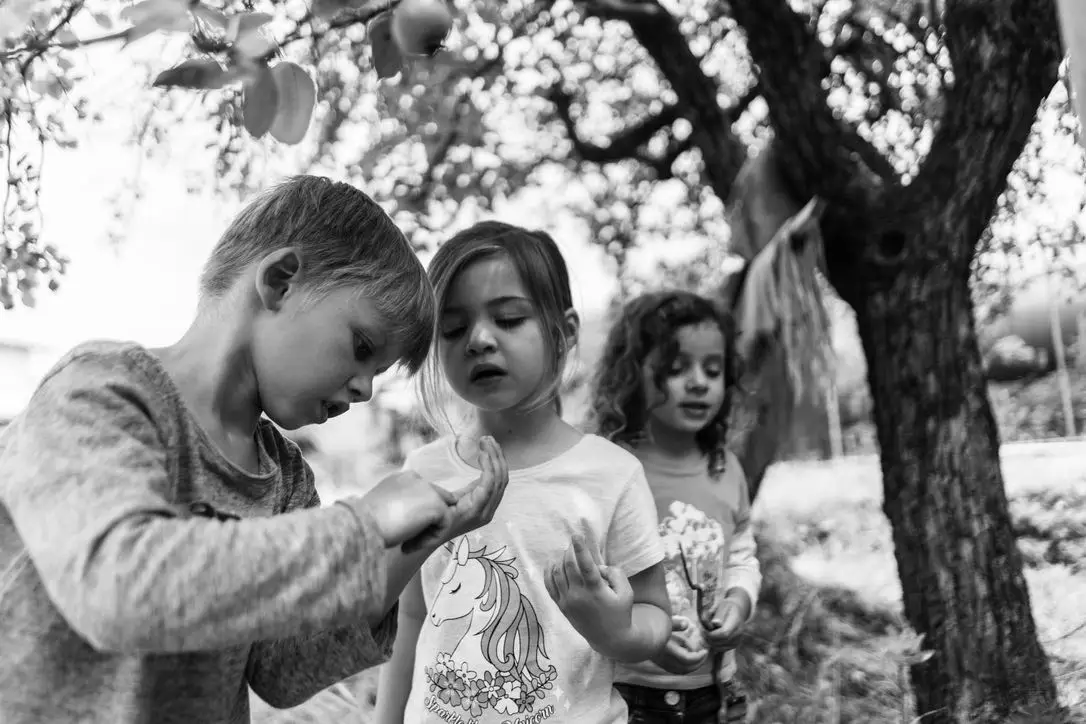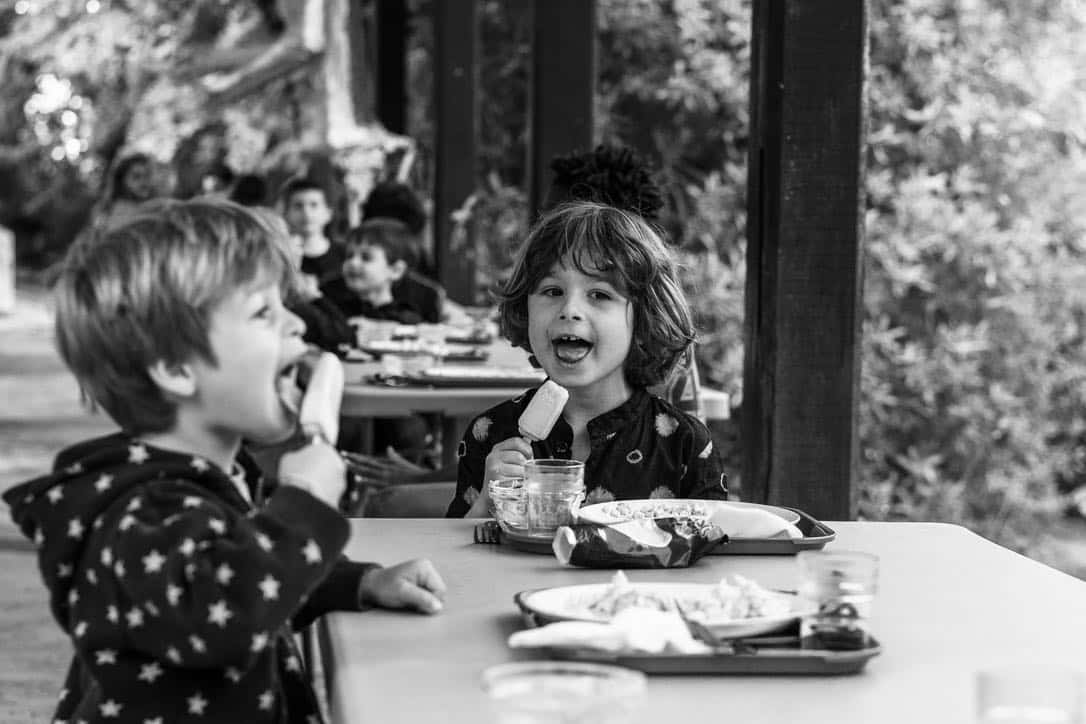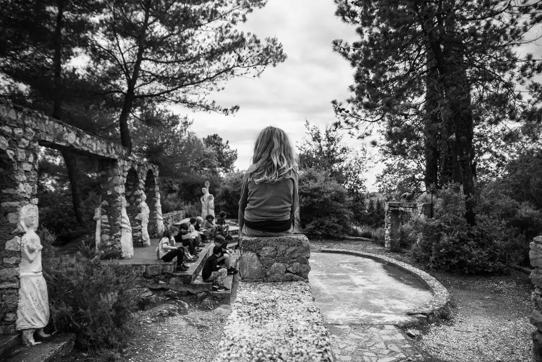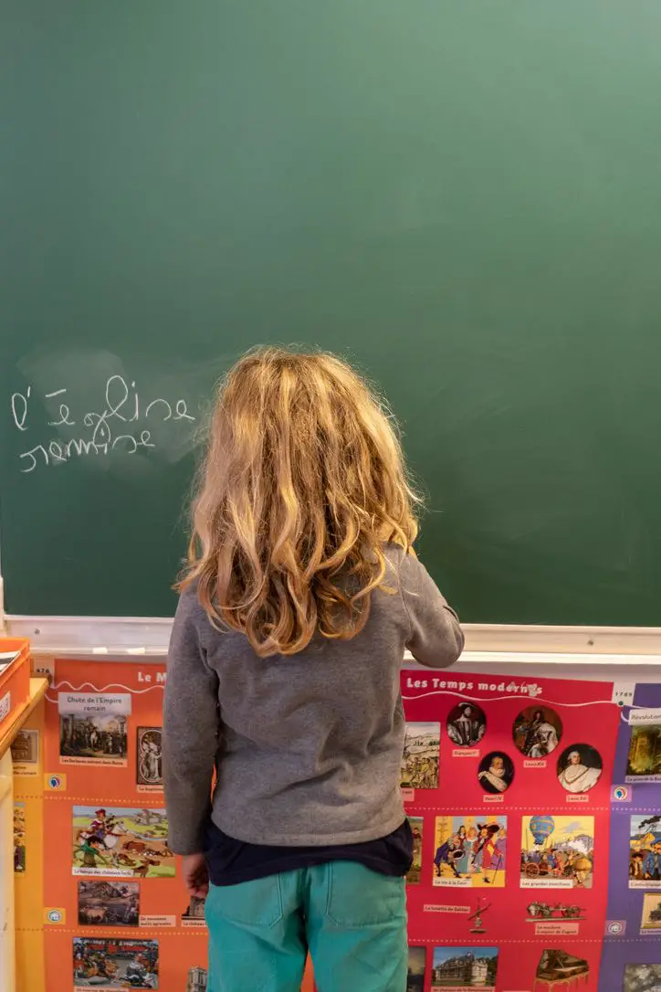 Les enfants de 3 à 10 ans établissent leurs journées comme ils ont l’habitude de le faire : Ils choisent les activités qu’ils ont envie de pratiquer. Ils présentent devant tous leurs camarades leurs poésies, le travail de la veille, une découverte faite durant le week end? dans l’amphitheatre à ciel ouvert ou sur la terrasse panoramique qui domine les montagnes. Les plus petits ont droit, comme toutes les semaines d’intervenir sur le potager de l’école ou Marie Paule les initie aux semances plantées et aux premières récoltes.