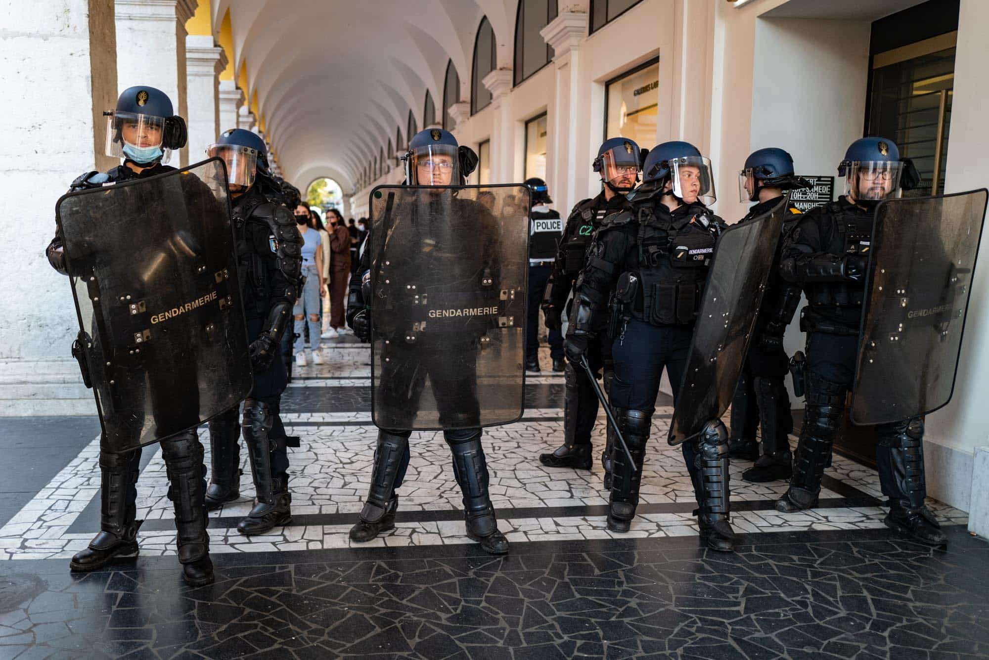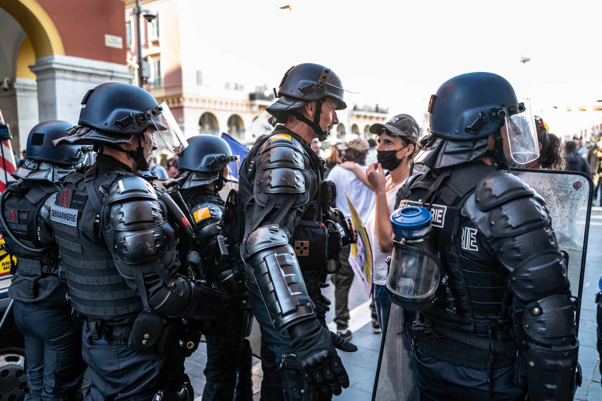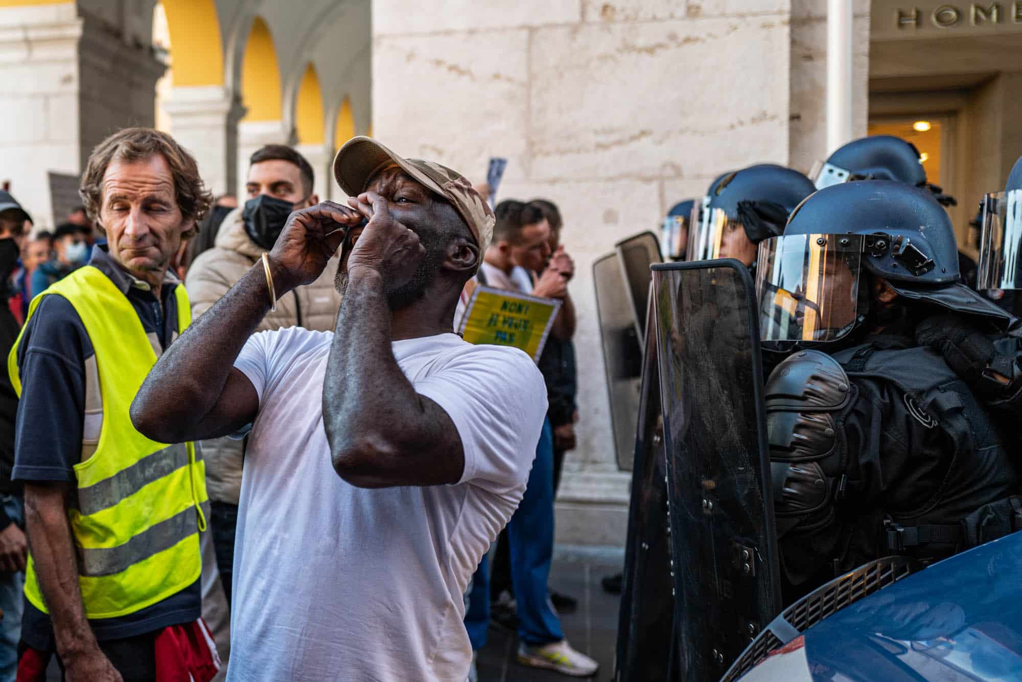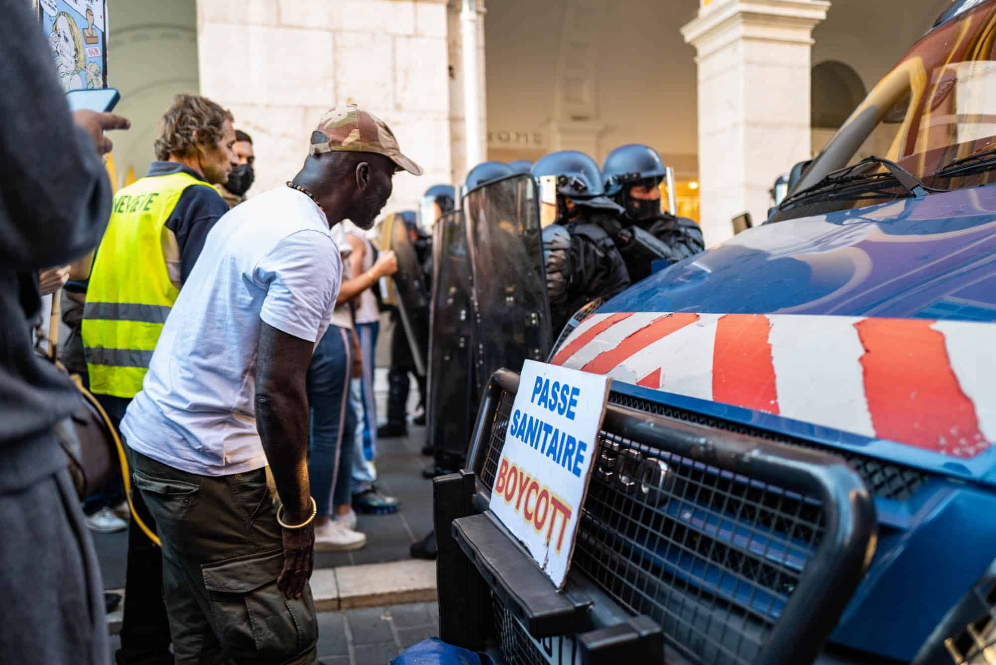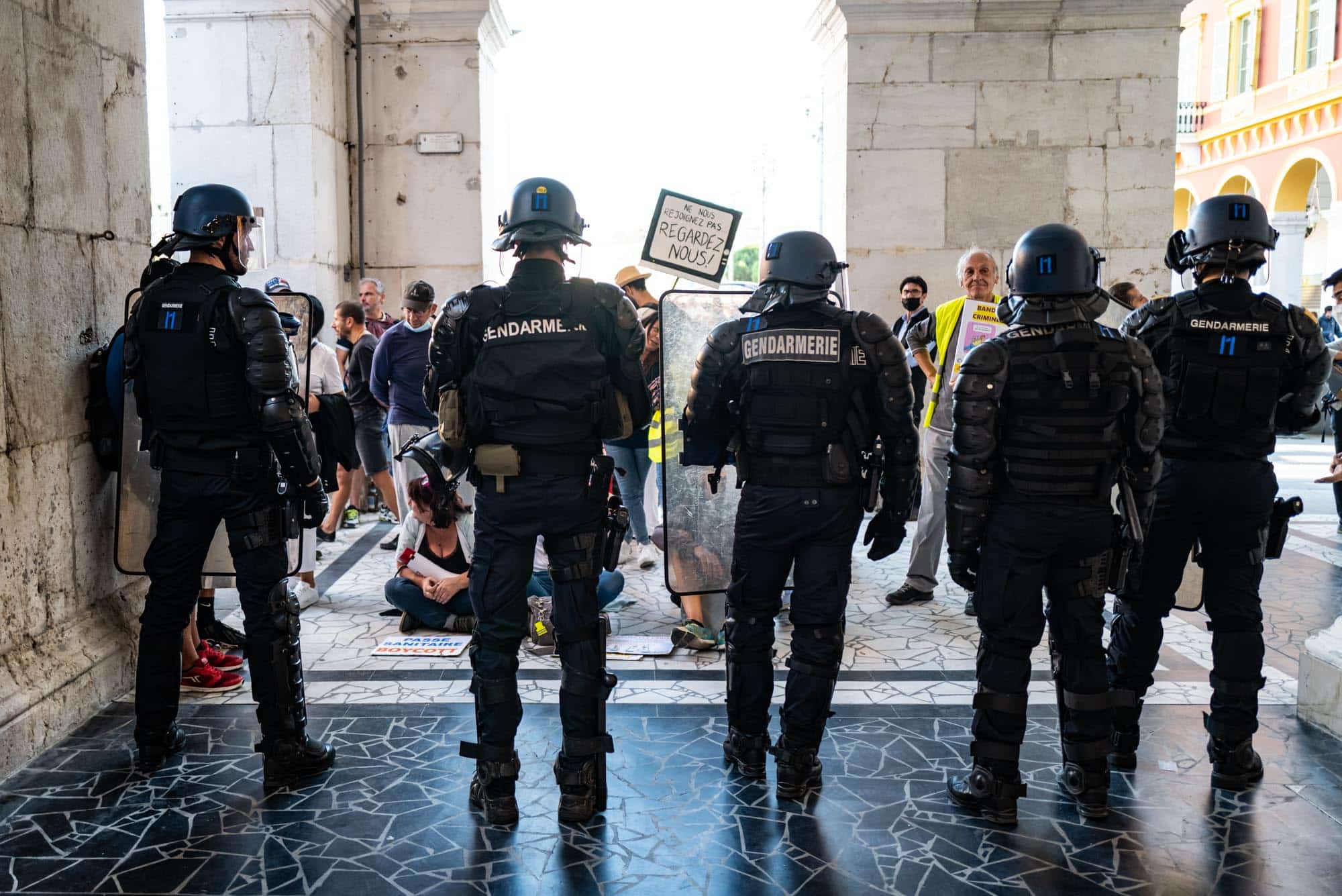 Face aux manifestants anti pass sanitaires, la gendarmerie mobile est mobilisée pour interrompre le cortège.