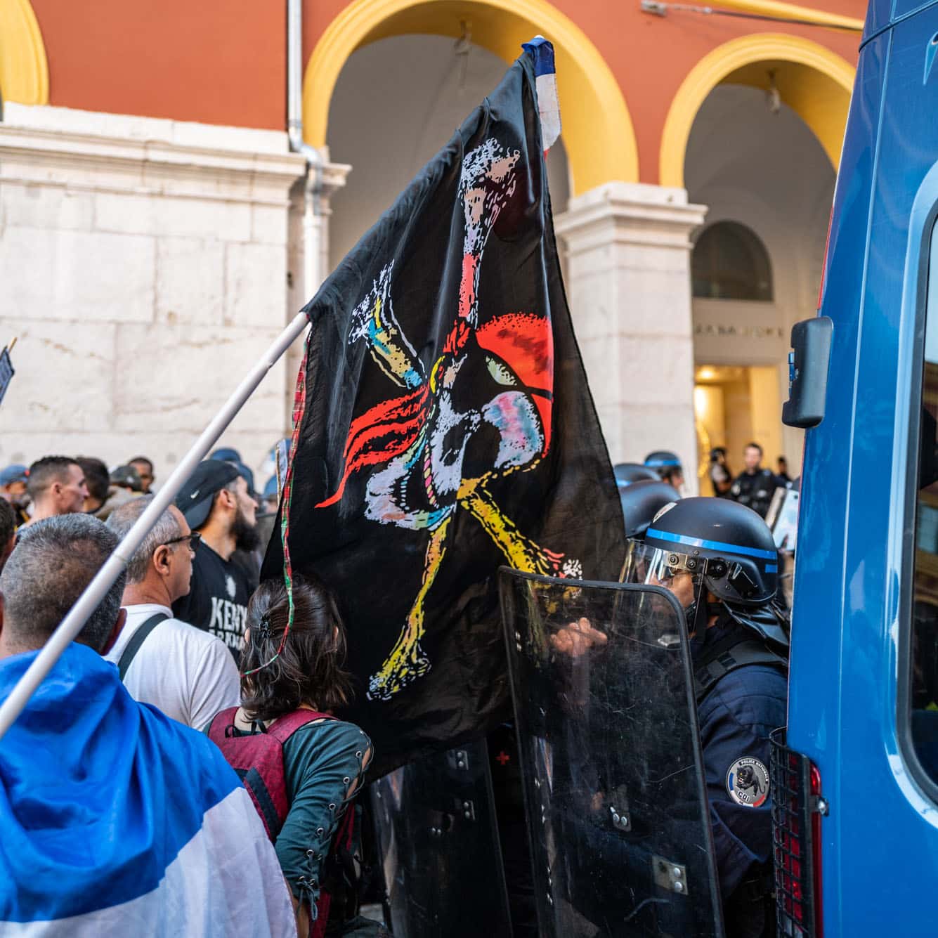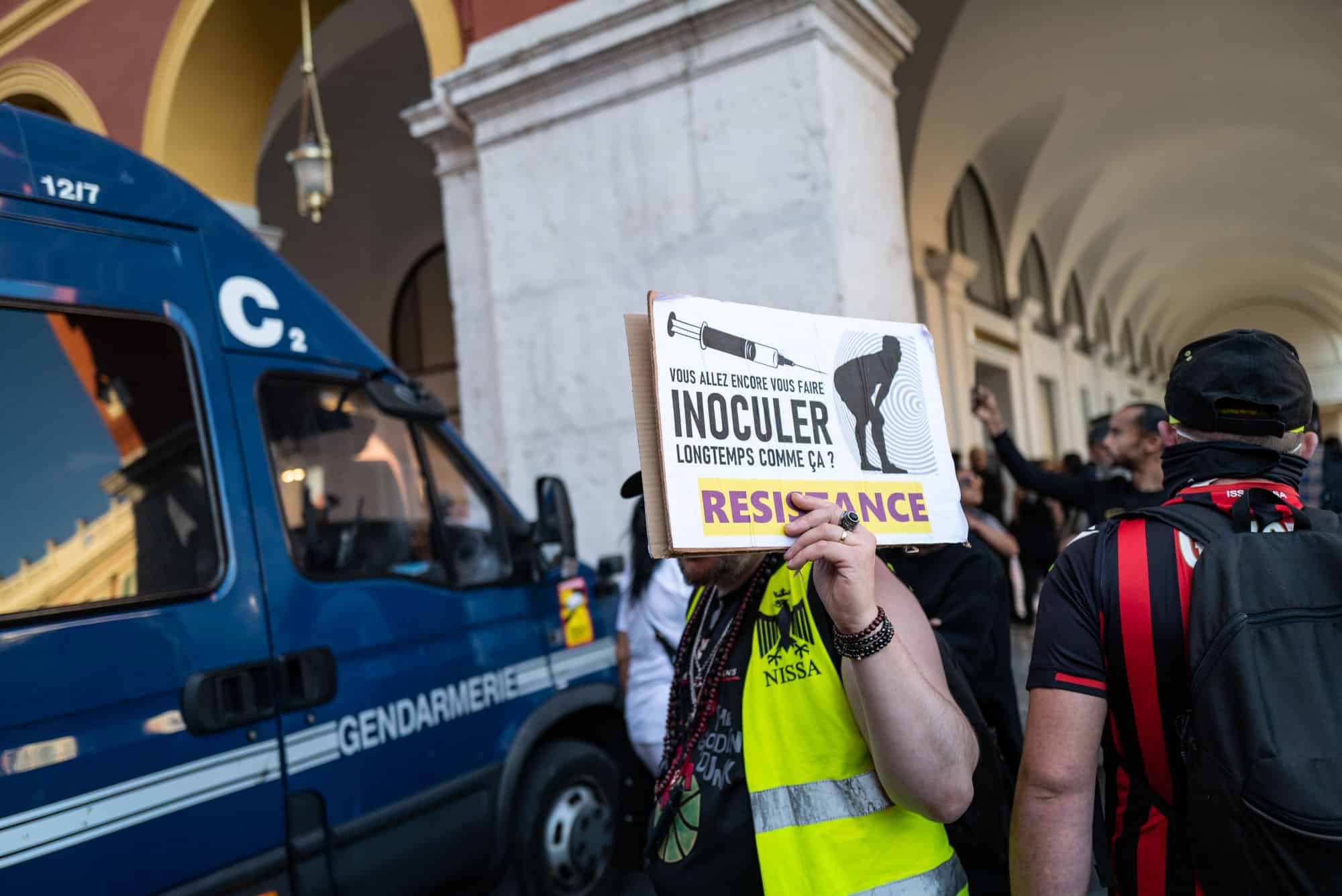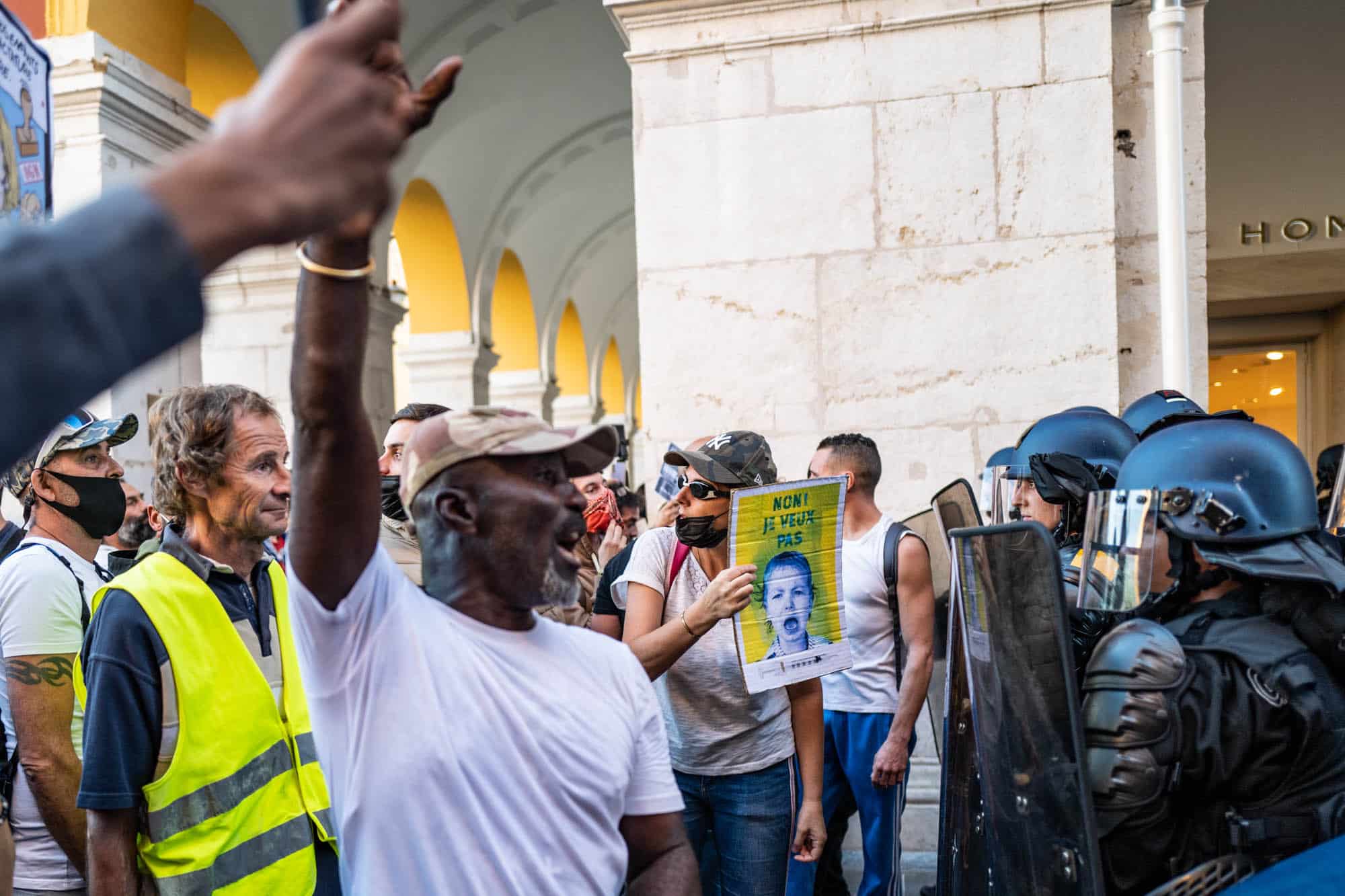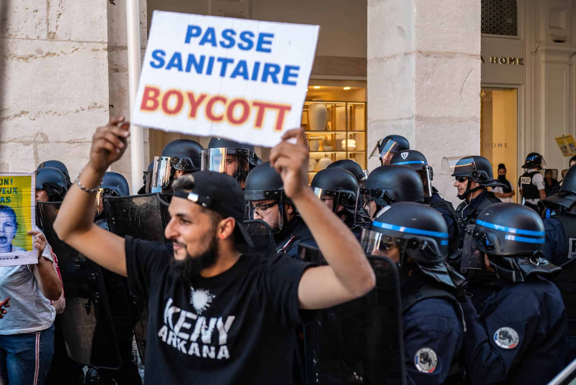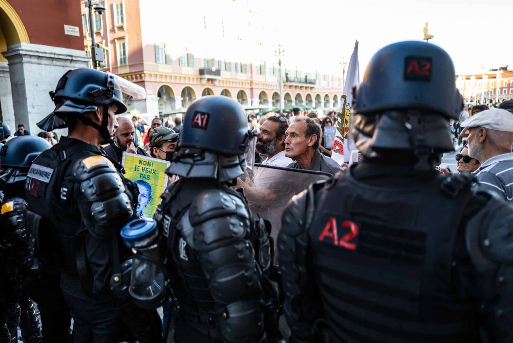Face aux manifestants anti pass sanitaires, la gendarmerie mobile est mobilisée pour interrompre le cortège.