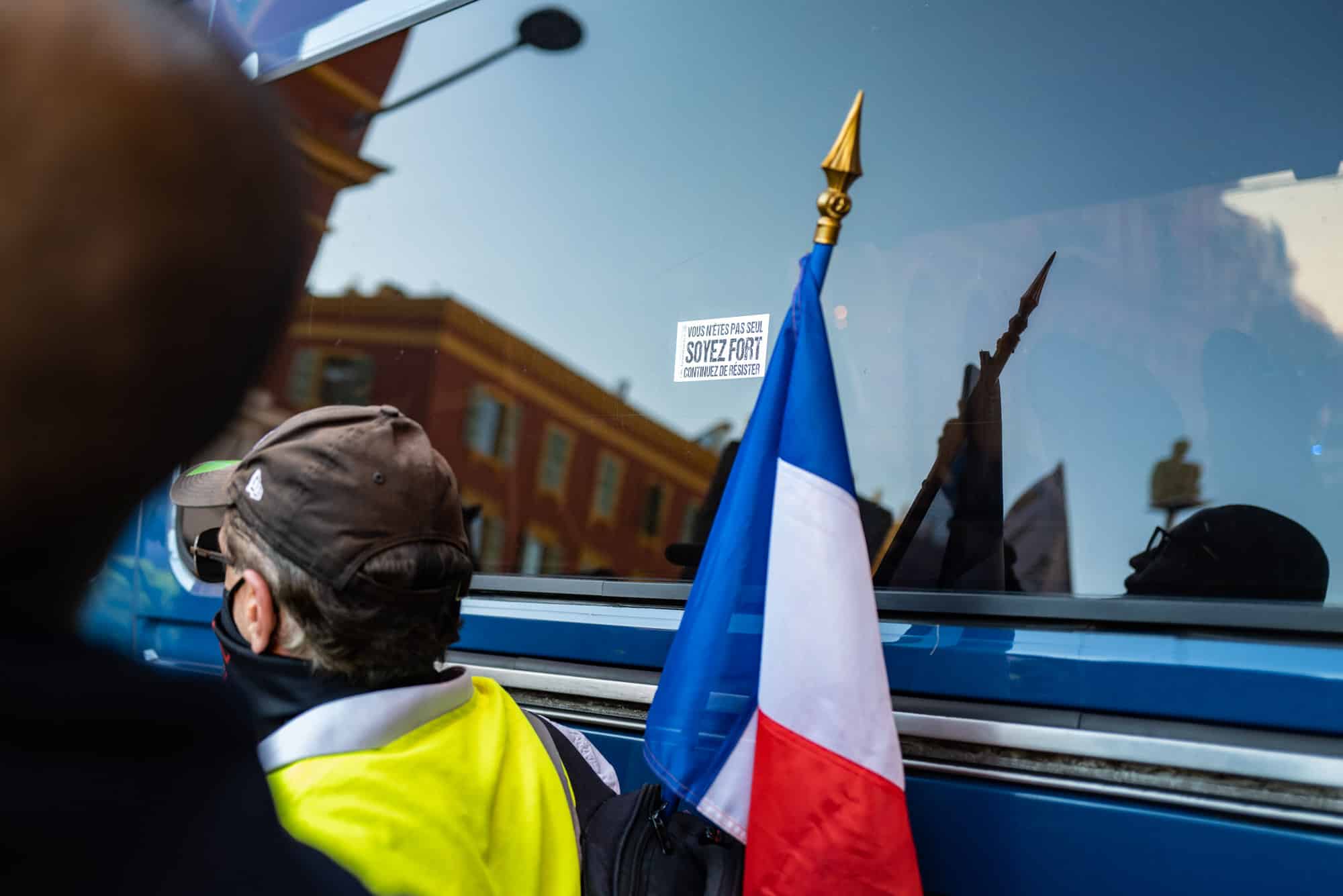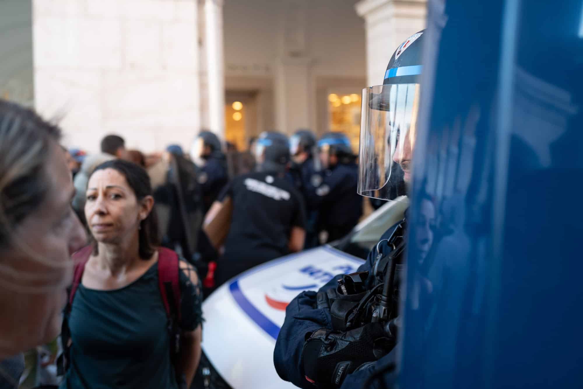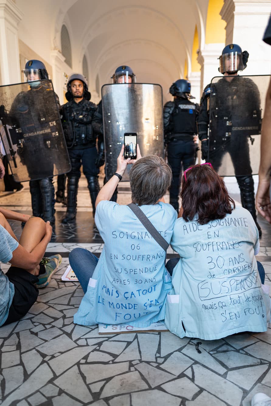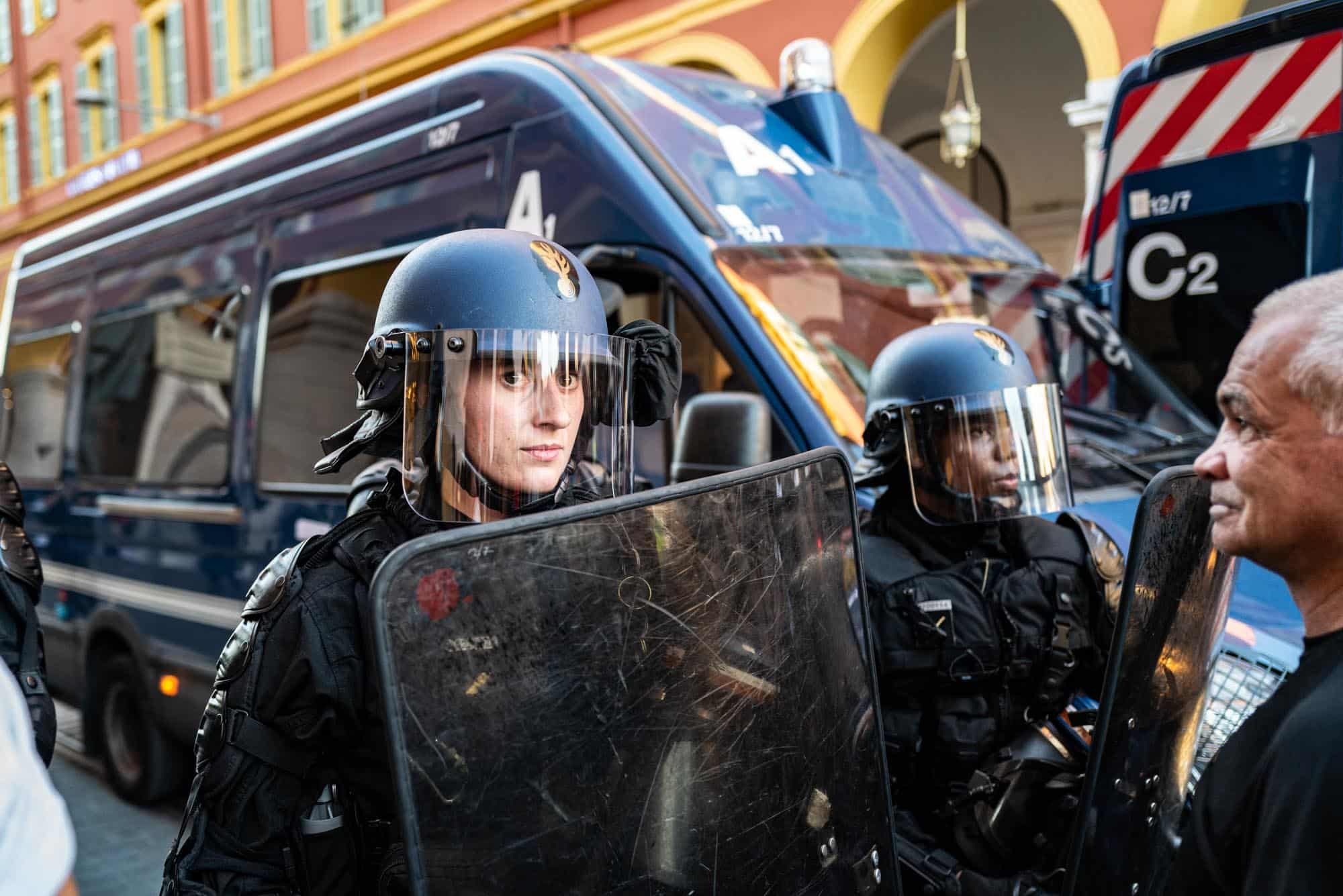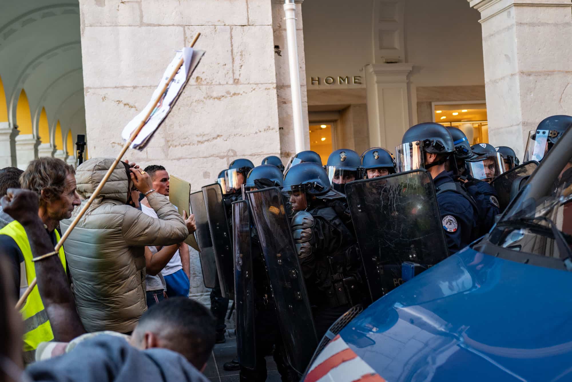 Face aux manifestants anti pass sanitaires, la gendarmerie mobile est mobilisée pour interrompre le cortège.
