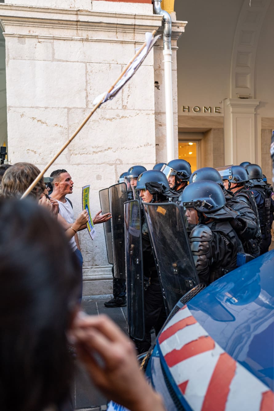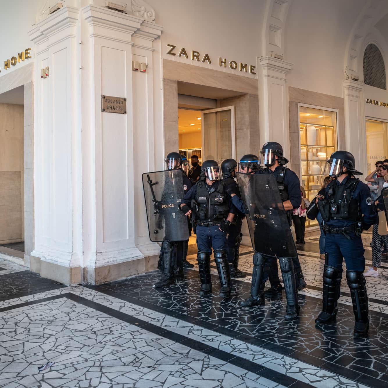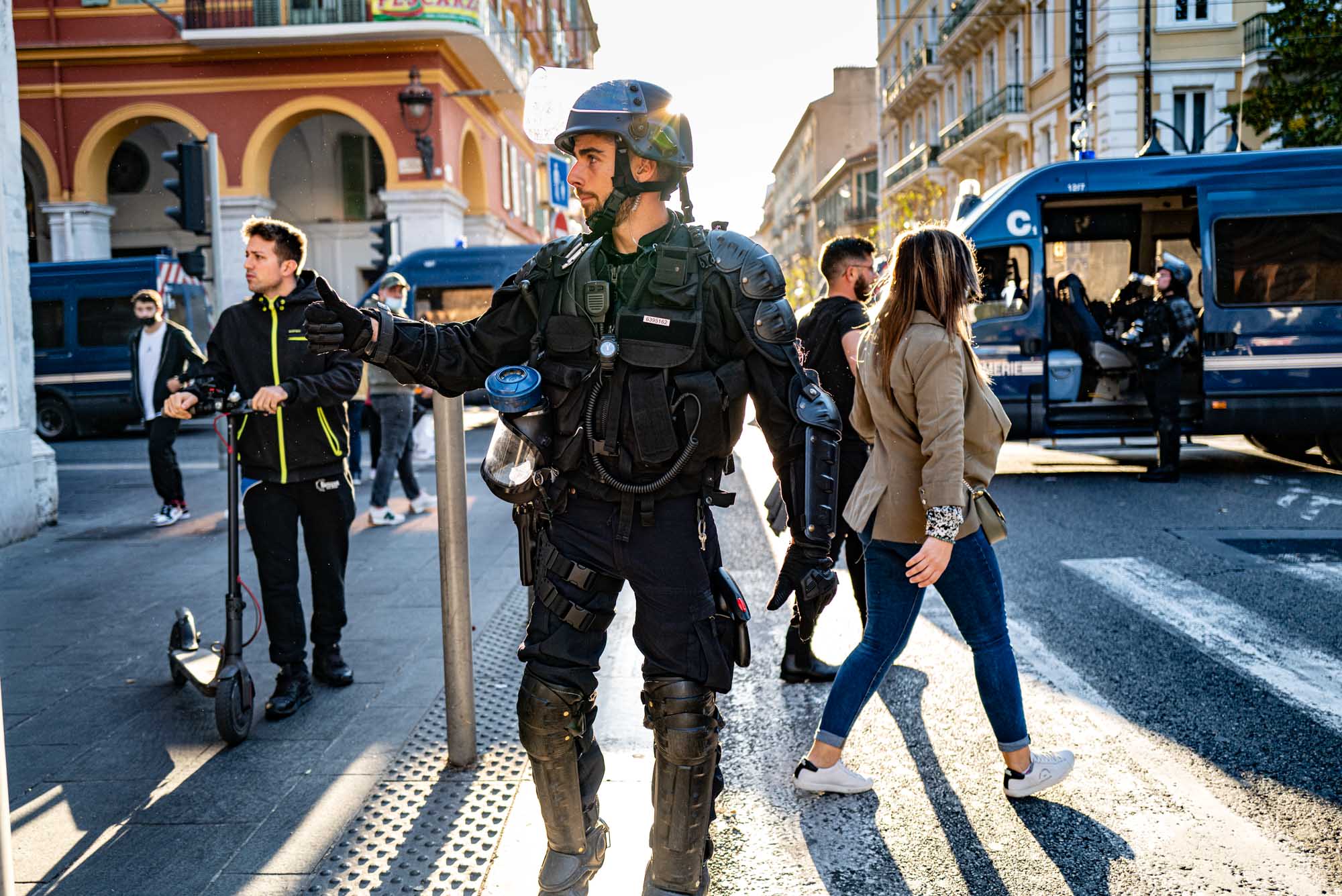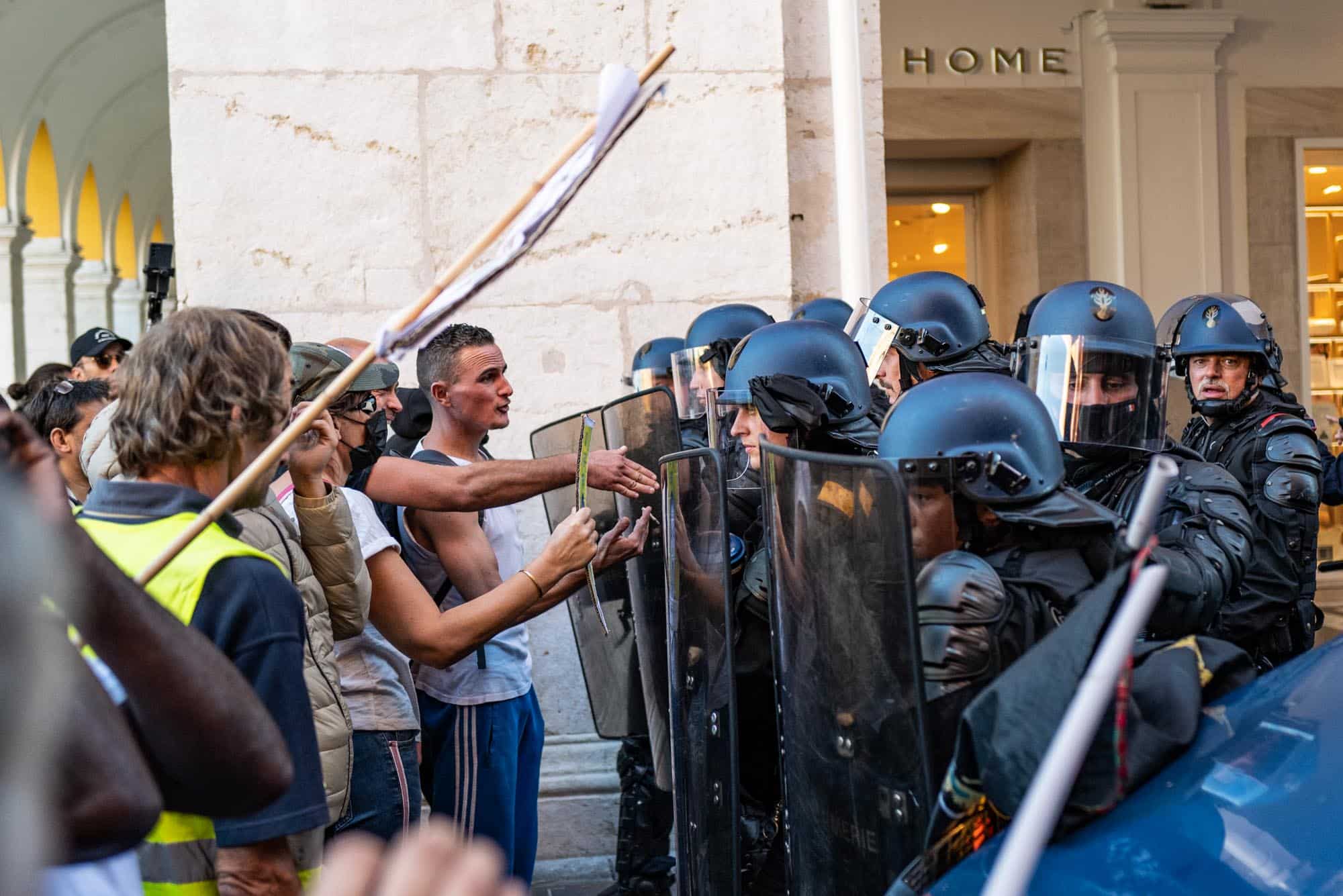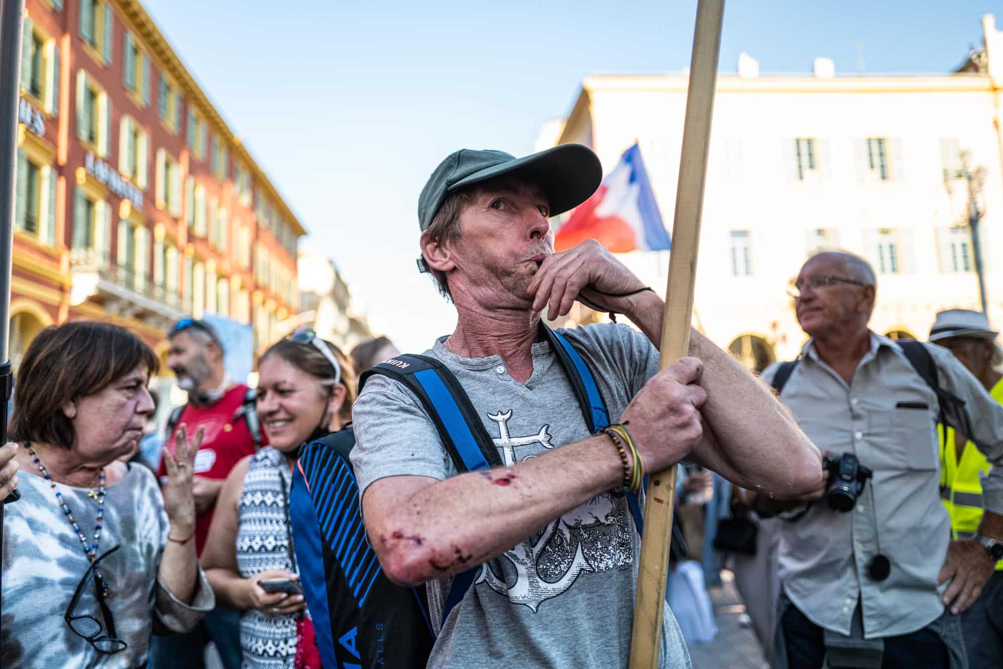 Face aux manifestants anti pass sanitaires, la gendarmerie mobile est mobilisée pour interrompre le cortège.