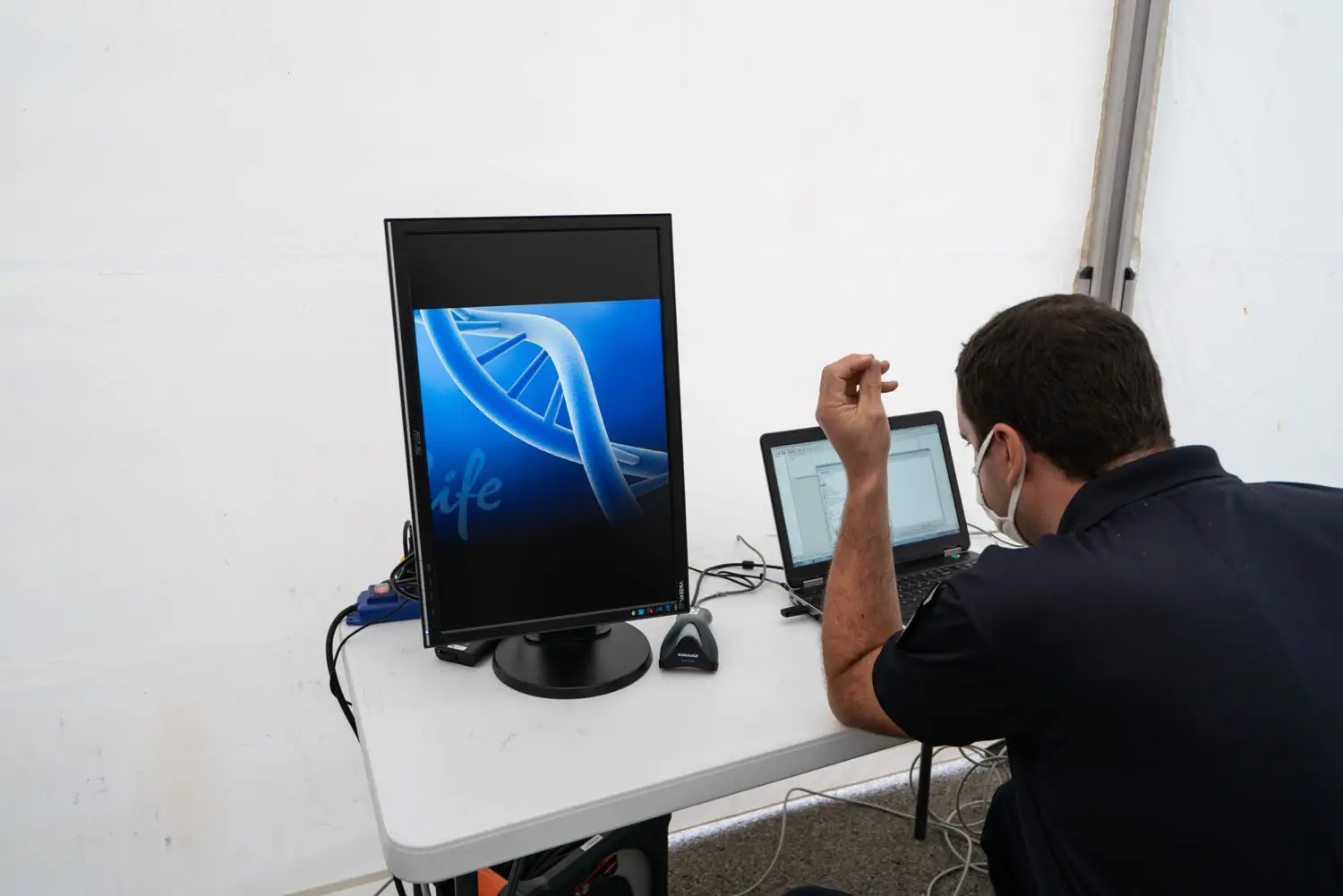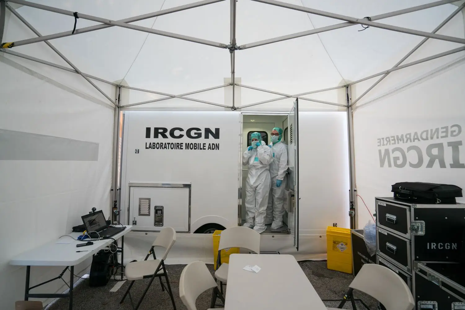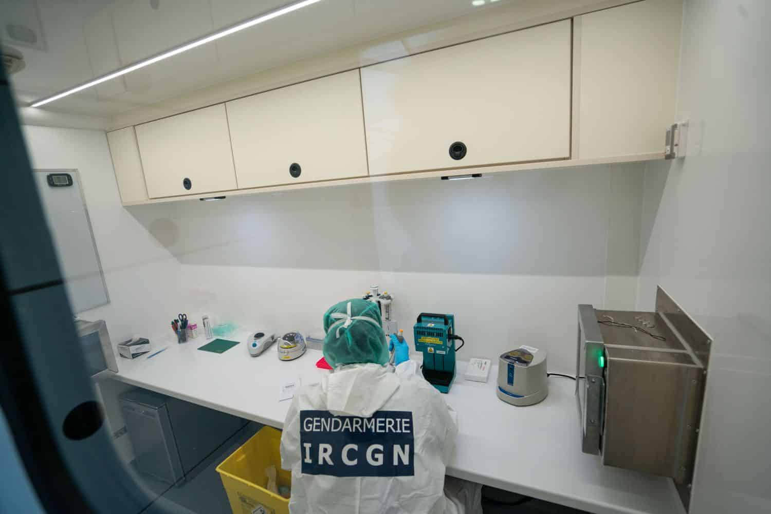 Les quatorze membres de cette division se sont portés volontaires pour remplir cette mission très spécifique : être à la fois sur le terrain pour obtenir de la part des familles des renseignements sur les objets que portaient les disparus (alliances, collier montres écharpes) puis retourner dans leur laboratoire mobile pour analyser les différents prélèvement récoltés sur le terrain.