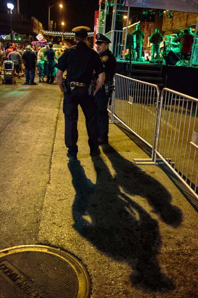 La fête bat son plein. Chapeaux cow boy et minijupes santiaguées s’endiablent autour des rythmes épicés de la country sud américaine.La bière coule à flot, aussi fort que la police veille, jamais très loin……Une Amérique pas si policée que ça !