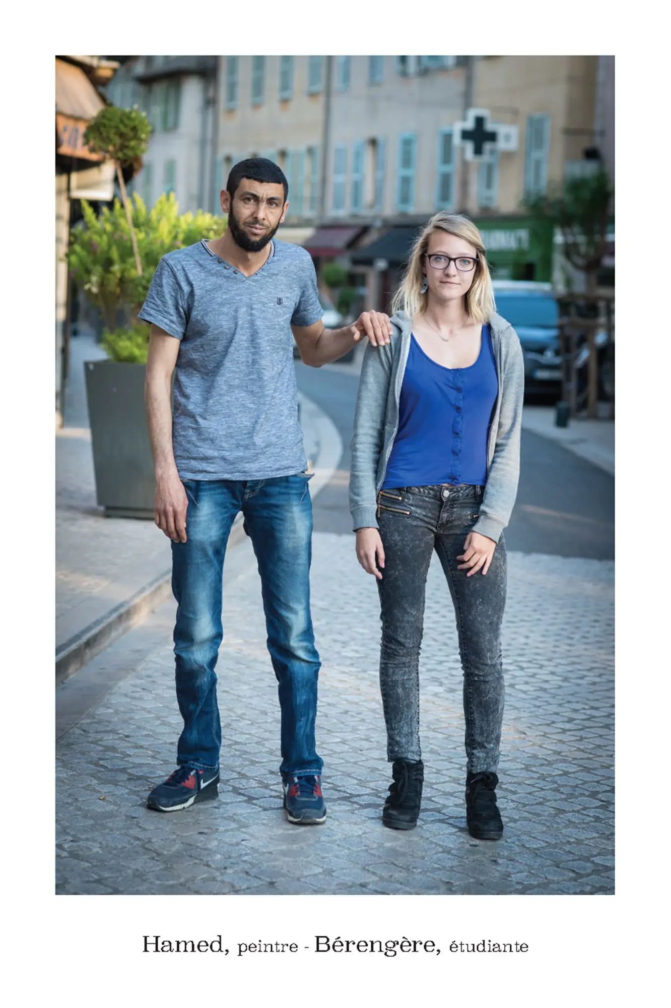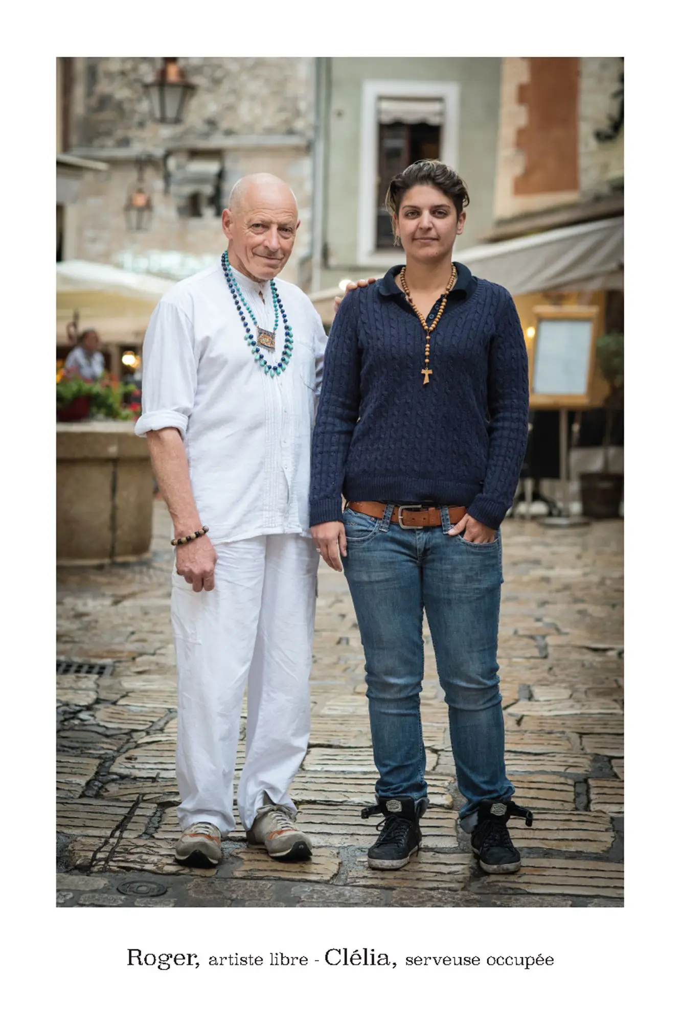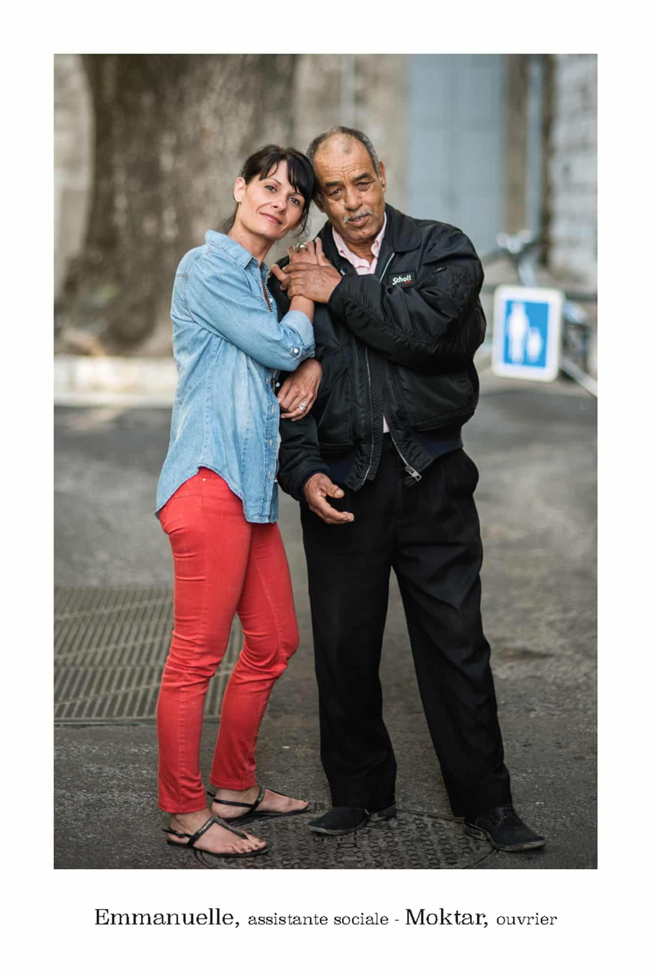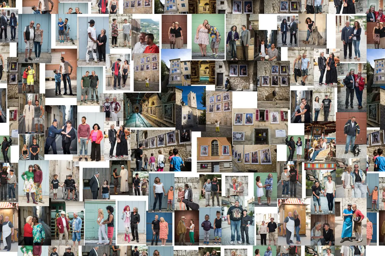 De parfaits inconnus qui ne se connaissent pas, les associer en binôme pour inventer des couples éphémères, représentatifs de cette riche mosaïque qui constitue le tissu social et culturel de la commune de Vence. Hommes, femmes, enfants, jeunes, seniors…La seule contrainte pour eux était d’avoir, un « coup decoeur » spontané pour les personnes qu’ils voyaient passer puis, laisser parler leur intuition.. Ensuite, ils leur expliquaient leur projet afin qu’ils acceptent de poser pour l’artiste. Pour leur plus grande joie, tous se sont prêtés au jeu avec sincérité. Tous ont voulu laisser ce témoignage tranquille, chaleureux, de ce que veut dire vraiment, la notion de « diversité » et de « vivre ensemble ».
