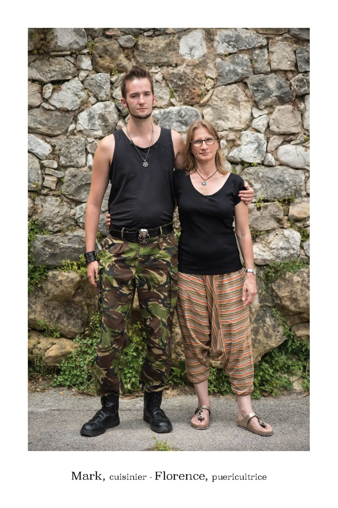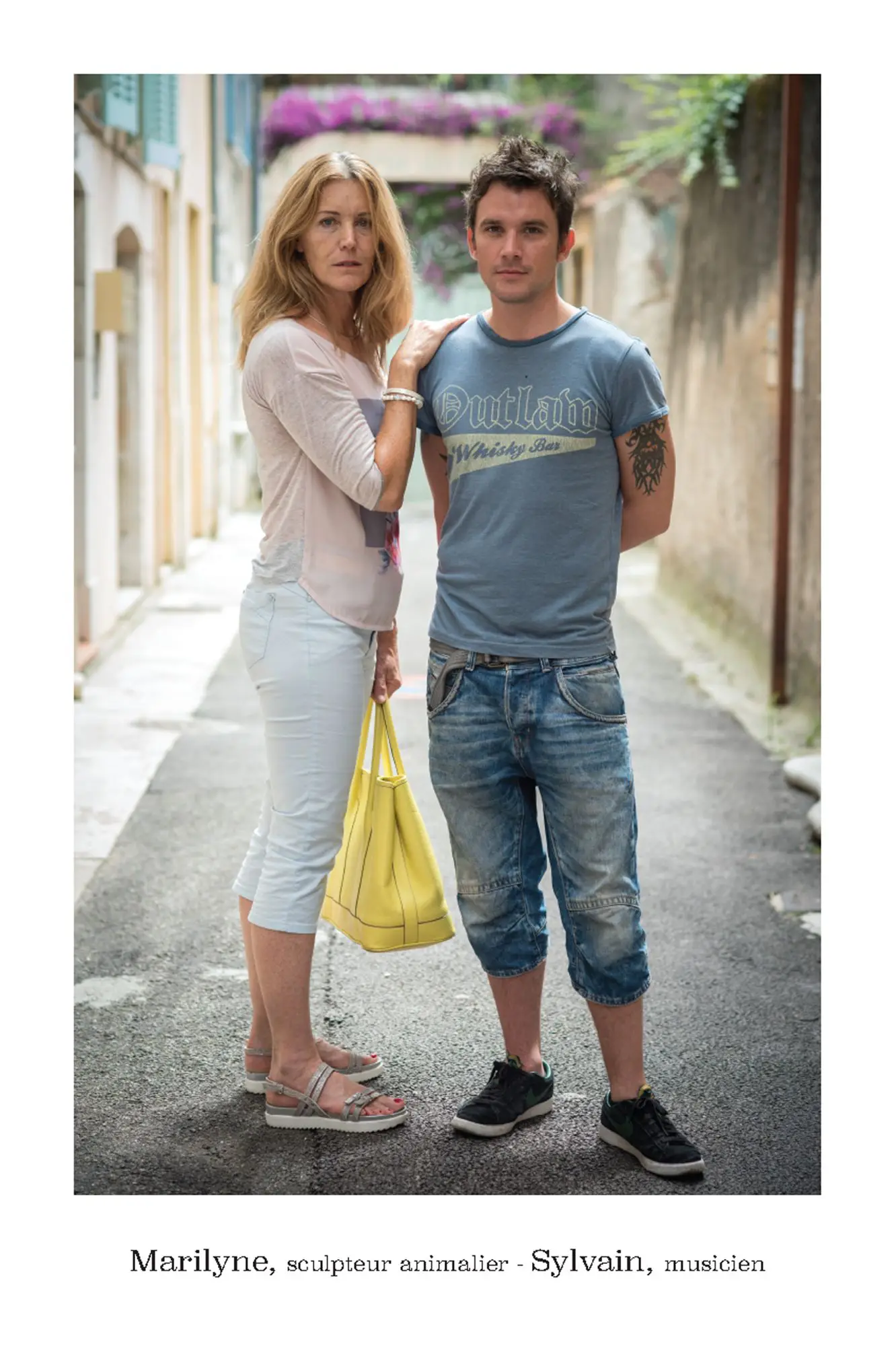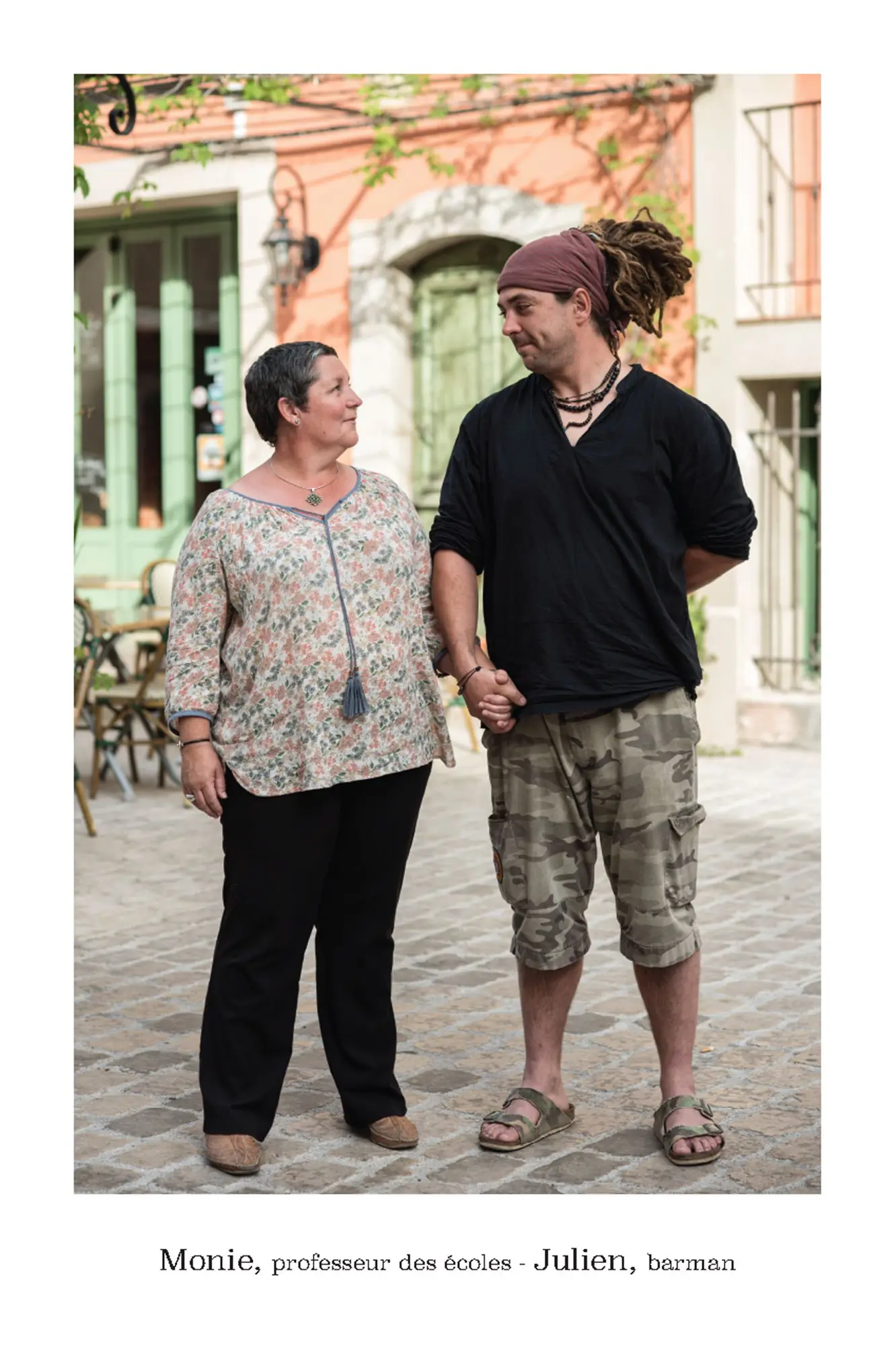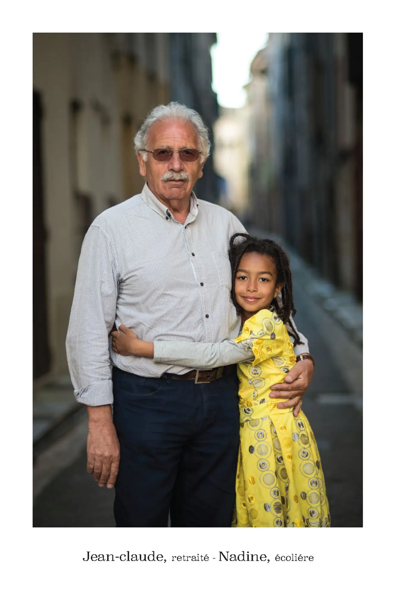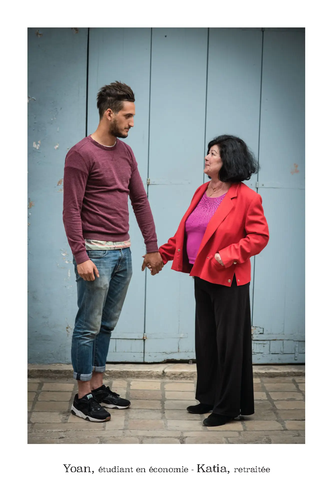 De parfaits inconnus qui ne se connaissent pas, les associer en binôme pour inventer des couples éphémères, représentatifs de cette riche mosaïque qui constitue le tissu social et culturel de la commune de Vence. Hommes, femmes, enfants, jeunes, seniors…La seule contrainte pour eux était d’avoir, un « coup decoeur » spontané pour les personnes qu’ils voyaient passer puis, laisser parler leur intuition.. Ensuite, ils leur expliquaient leur projet afin qu’ils acceptent de poser pour l’artiste. Pour leur plus grande joie, tous se sont prêtés au jeu avec sincérité. Tous ont voulu laisser ce témoignage tranquille, chaleureux, de ce que veut dire vraiment, la notion de « diversité » et de « vivre ensemble ».