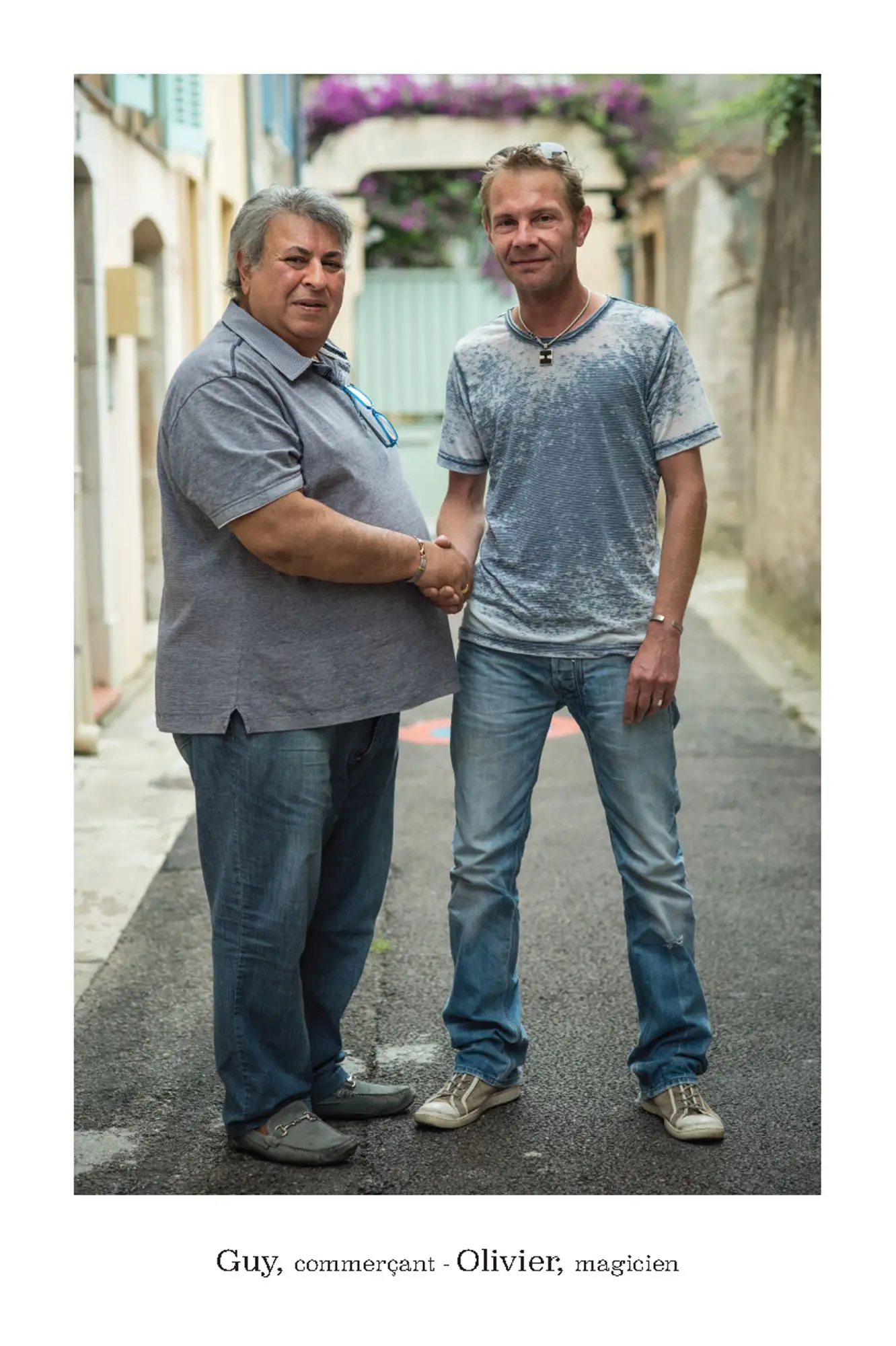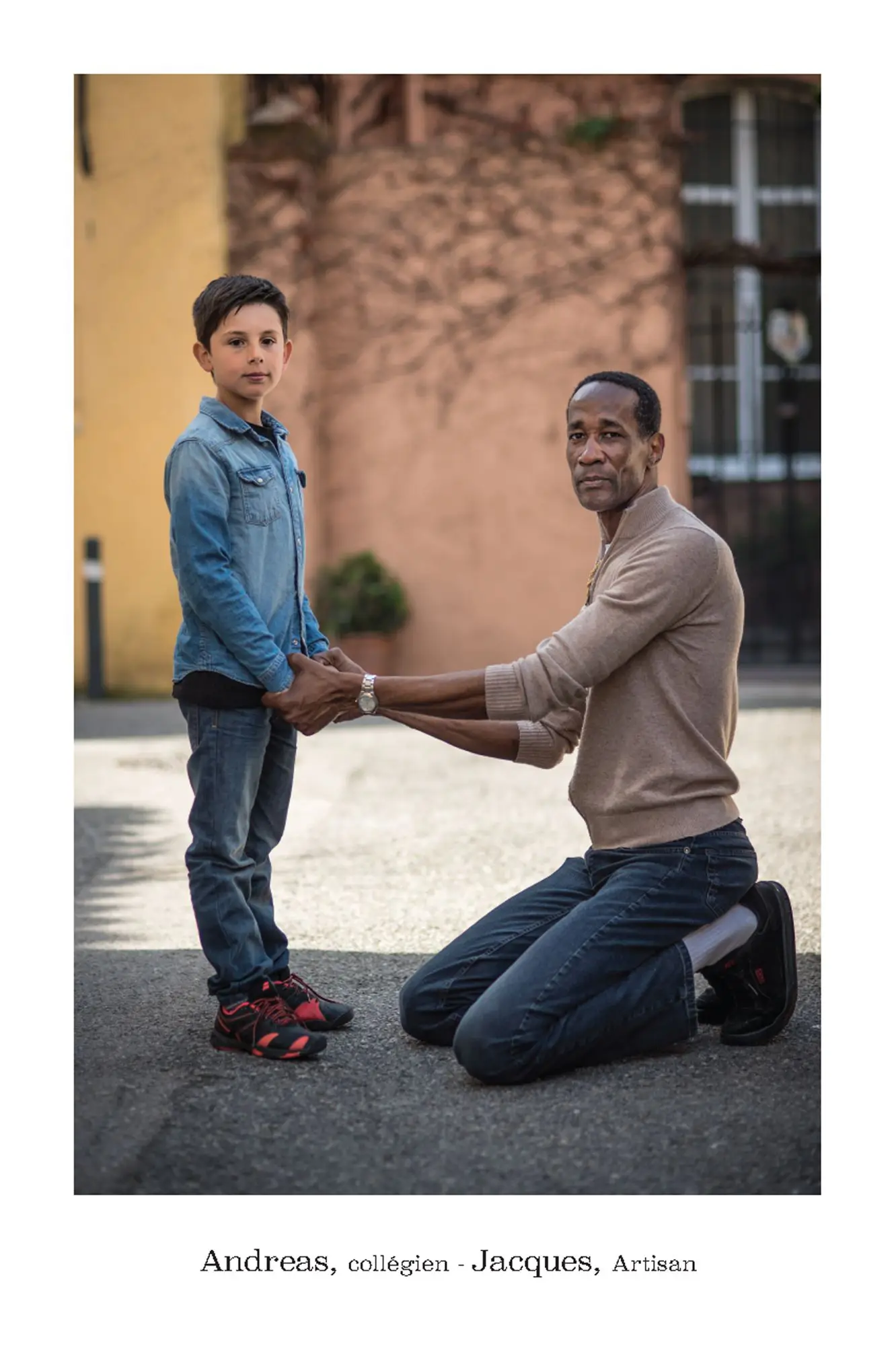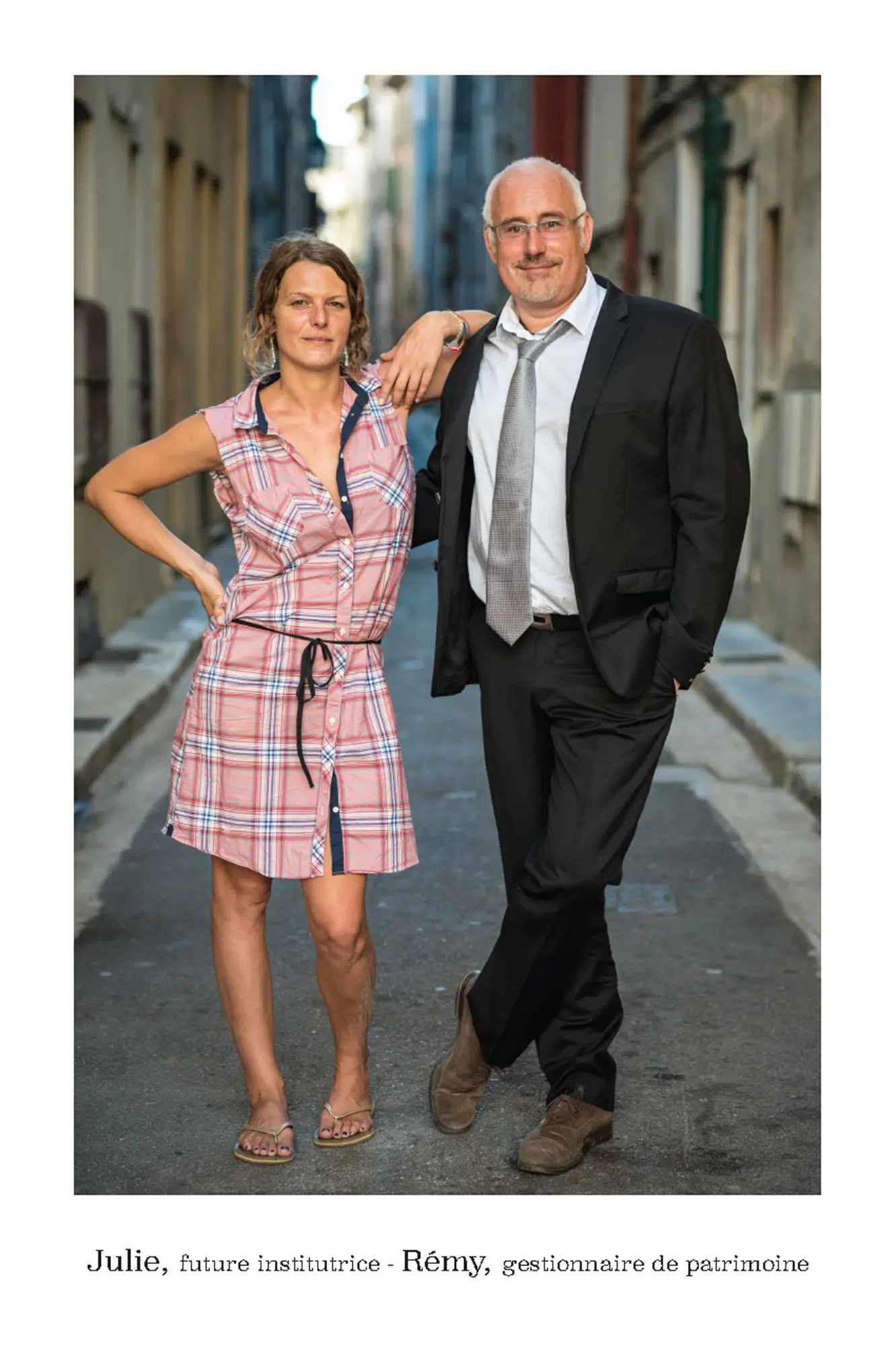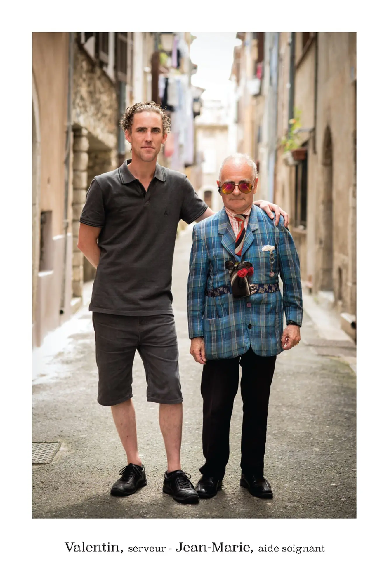 De parfaits inconnus qui ne se connaissent pas, les associer en binôme pour inventer des couples éphémères, représentatifs de cette riche mosaïque qui constitue le tissu social et culturel de la commune de Vence. Hommes, femmes, enfants, jeunes, seniors…La seule contrainte pour eux était d’avoir, un « coup decoeur » spontané pour les personnes qu’ils voyaient passer puis, laisser parler leur intuition.. Ensuite, ils leur expliquaient leur projet afin qu’ils acceptent de poser pour l’artiste. Pour leur plus grande joie, tous se sont prêtés au jeu avec sincérité. Tous ont voulu laisser ce témoignage tranquille, chaleureux, de ce que veut dire vraiment, la notion de « diversité » et de « vivre ensemble ».