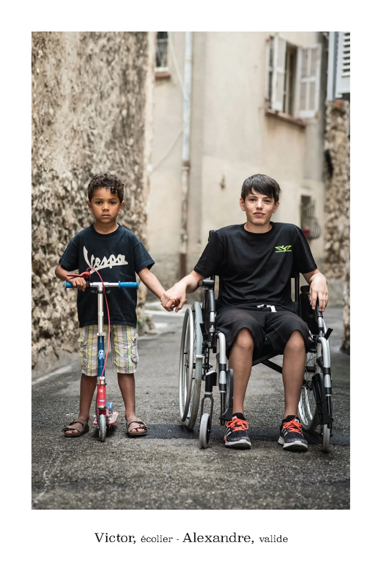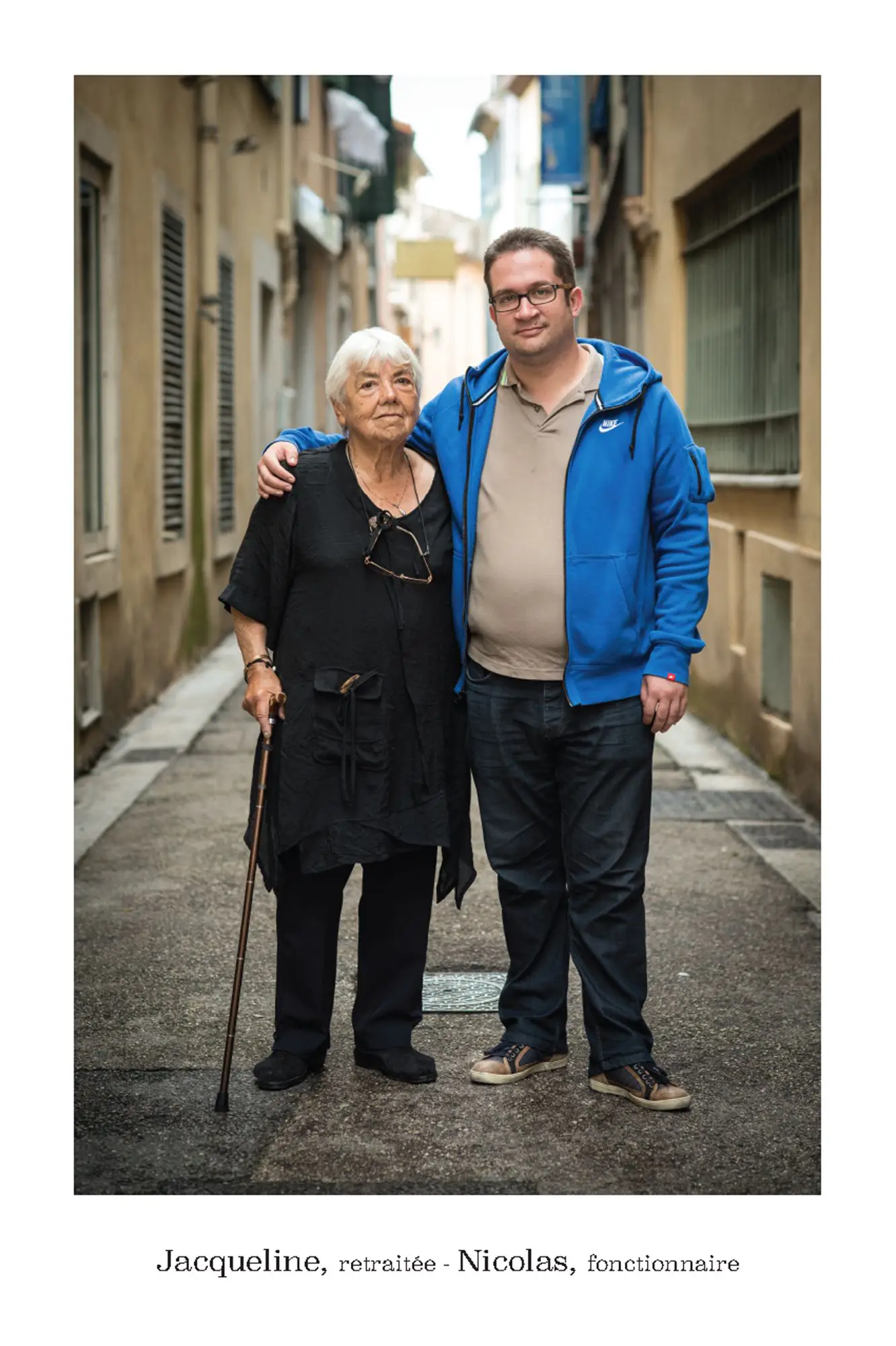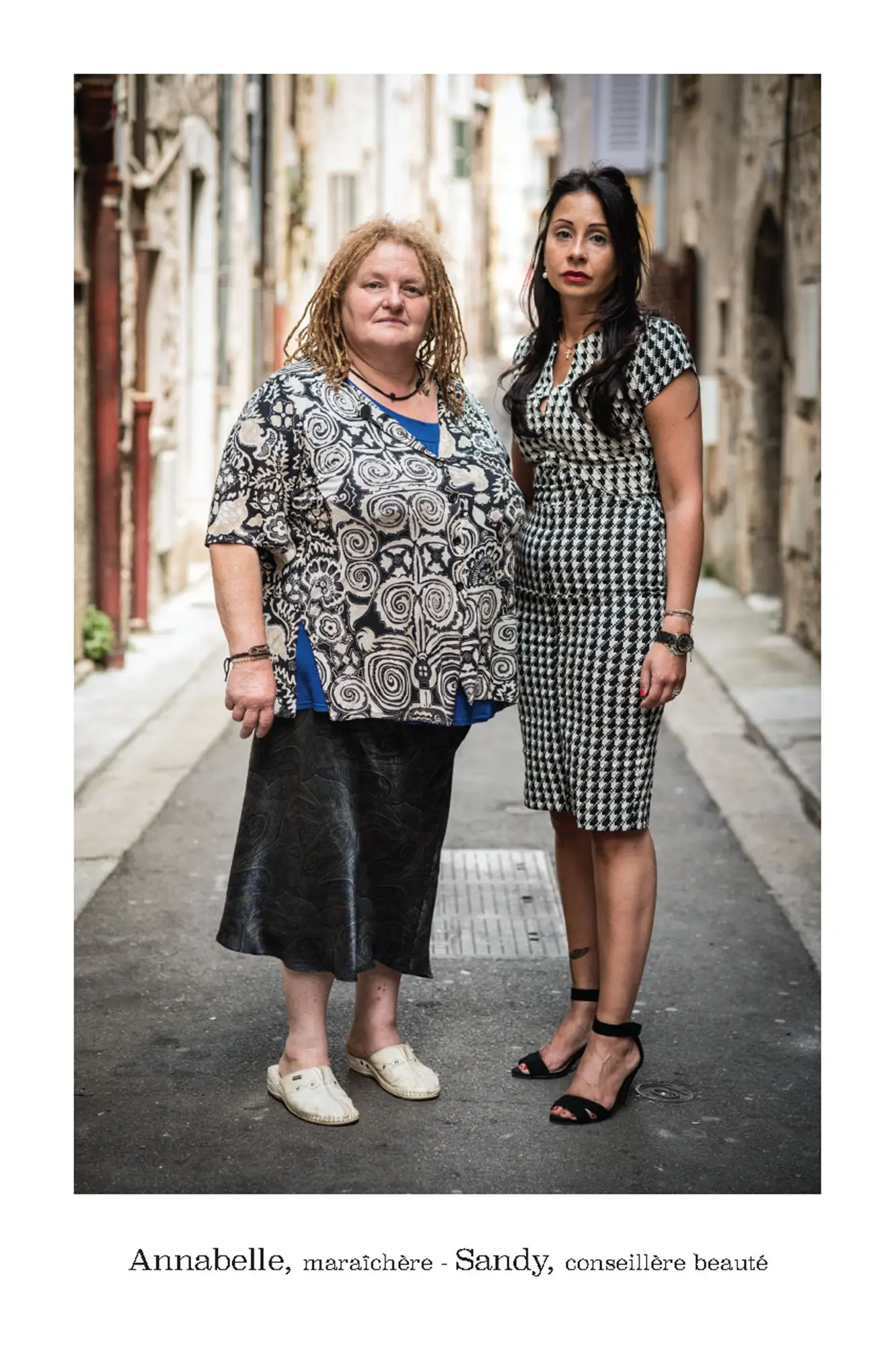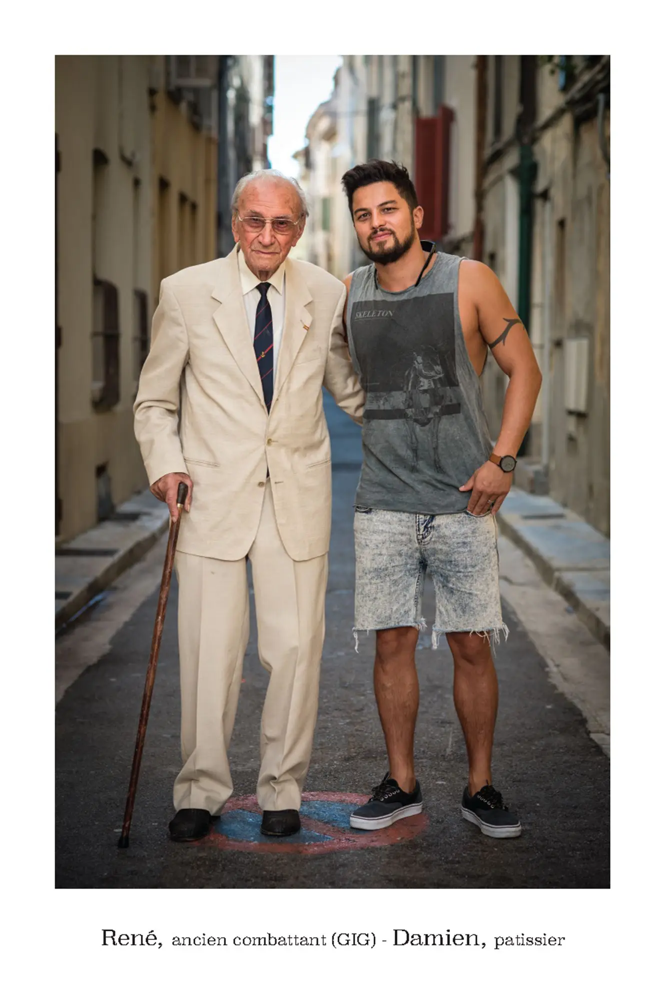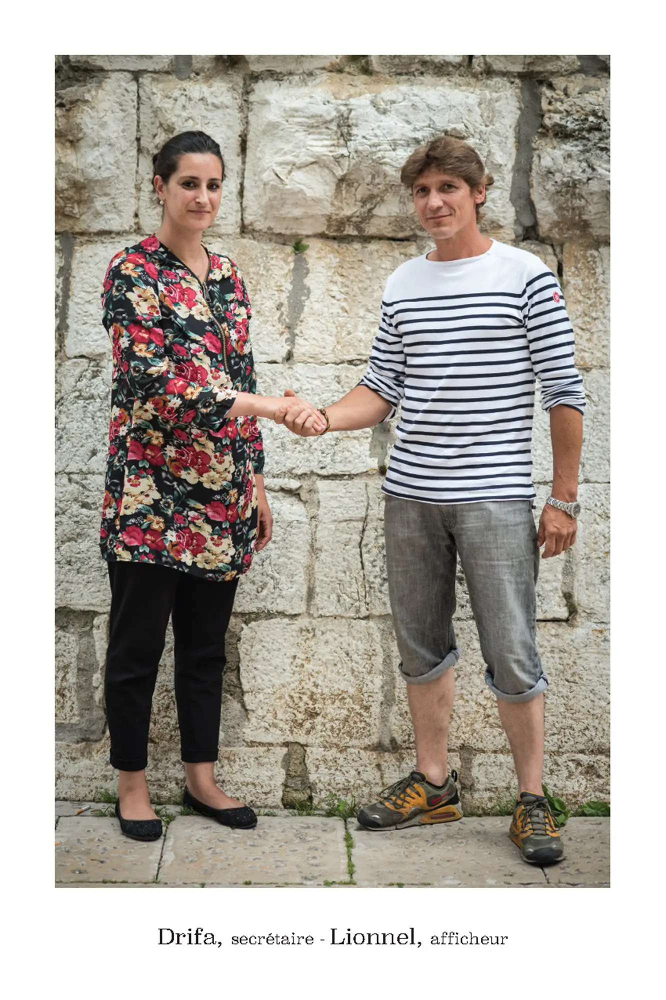 De parfaits inconnus qui ne se connaissent pas, les associer en binôme pour inventer des couples éphémères, représentatifs de cette riche mosaïque qui constitue le tissu social et culturel de la commune de Vence. Hommes, femmes, enfants, jeunes, seniors…La seule contrainte pour eux était d’avoir, un « coup decoeur » spontané pour les personnes qu’ils voyaient passer puis, laisser parler leur intuition.. Ensuite, ils leur expliquaient leur projet afin qu’ils acceptent de poser pour l’artiste. Pour leur plus grande joie, tous se sont prêtés au jeu avec sincérité. Tous ont voulu laisser ce témoignage tranquille, chaleureux, de ce que veut dire vraiment, la notion de « diversité » et de « vivre ensemble ».