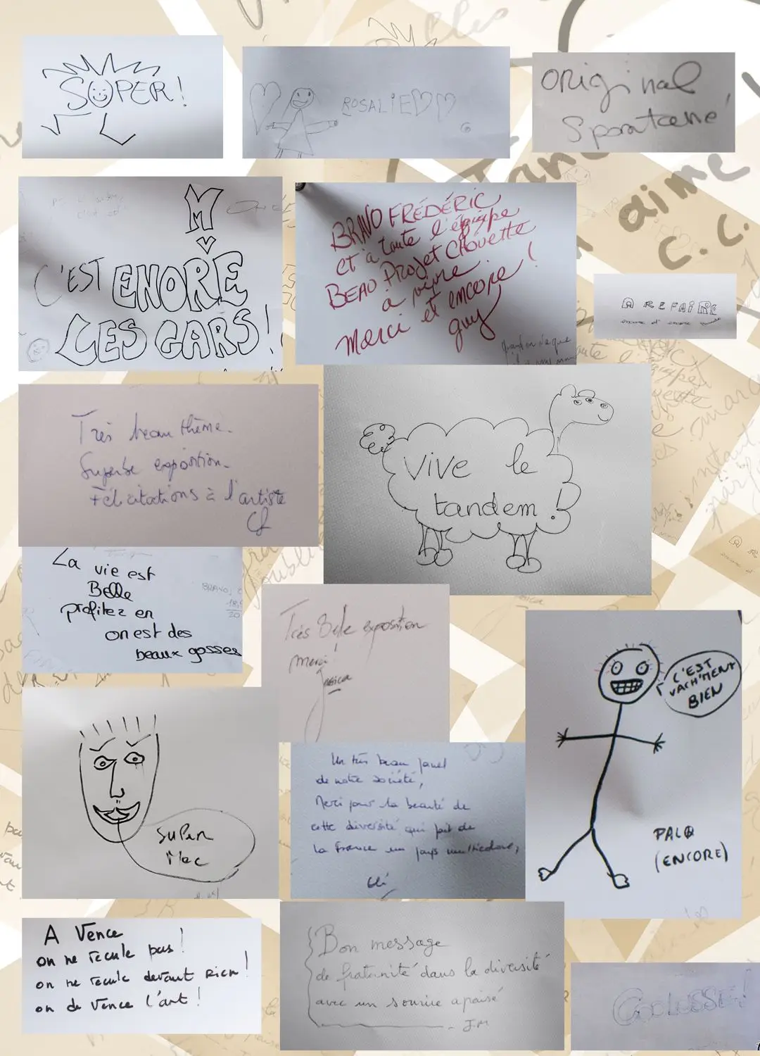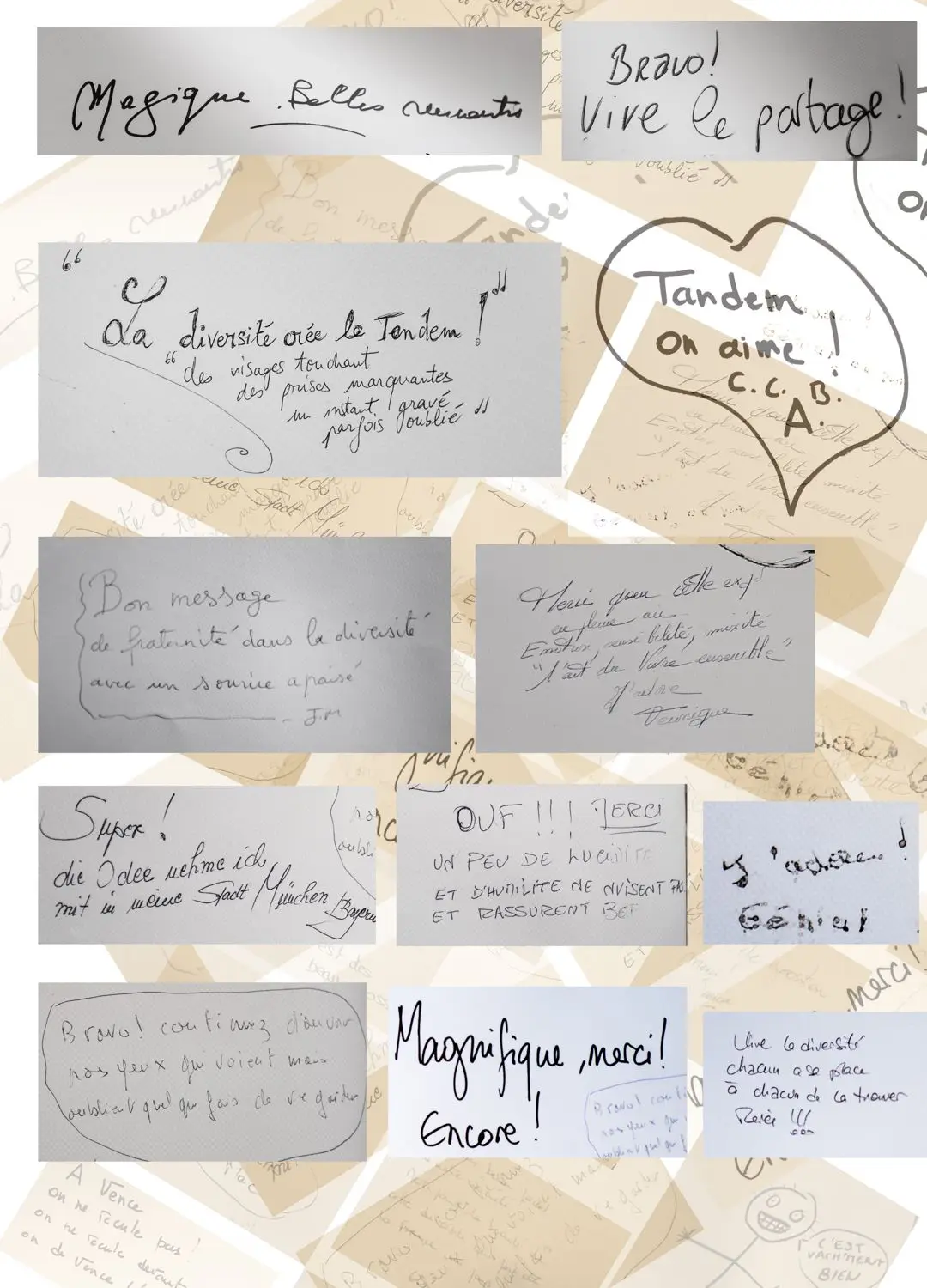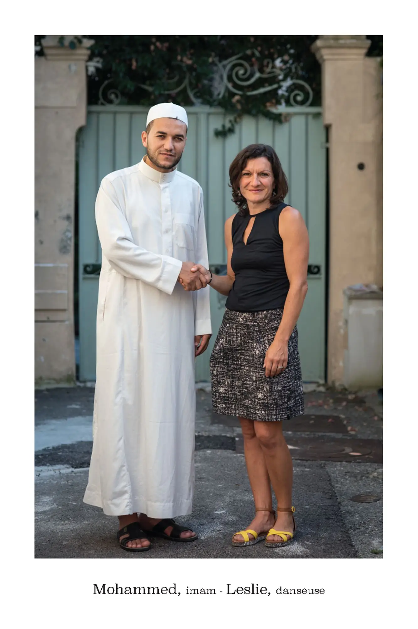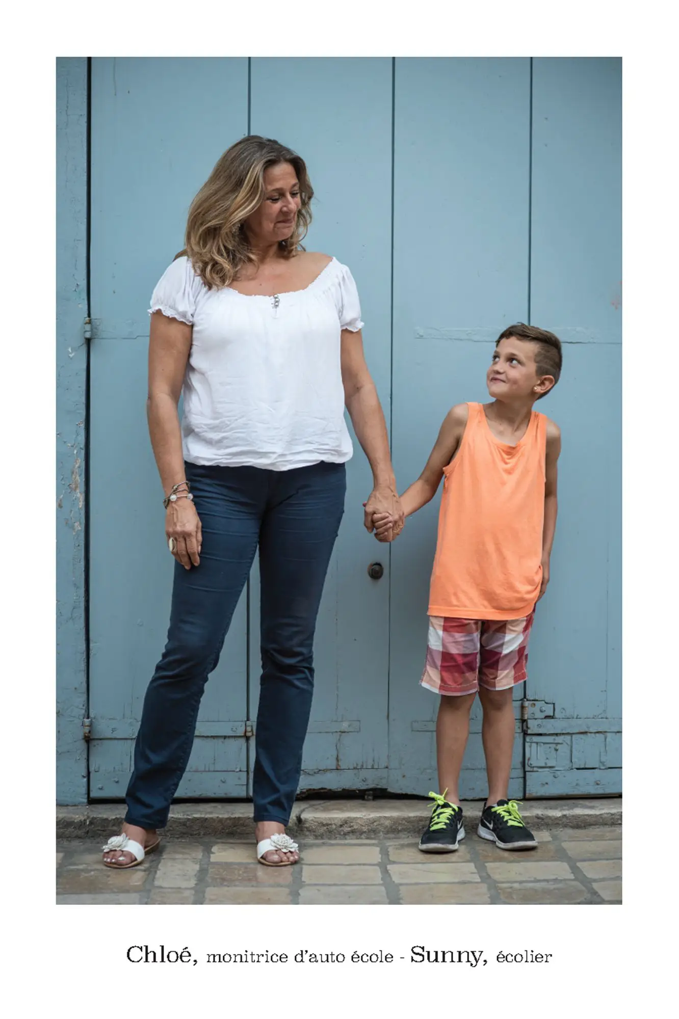 De parfaits inconnus qui ne se connaissent pas, les associer en binôme pour inventer des couples éphémères, représentatifs de cette riche mosaïque qui constitue le tissu social et culturel de la commune de Vence. Hommes, femmes, enfants, jeunes, seniors…La seule contrainte pour eux était d’avoir, un « coup decoeur » spontané pour les personnes qu’ils voyaient passer puis, laisser parler leur intuition.. Ensuite, ils leur expliquaient leur projet afin qu’ils acceptent de poser pour l’artiste. Pour leur plus grande joie, tous se sont prêtés au jeu avec sincérité. Tous ont voulu laisser ce témoignage tranquille, chaleureux, de ce que veut dire vraiment, la notion de « diversité » et de « vivre ensemble ».