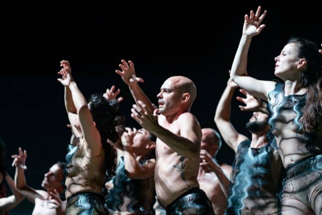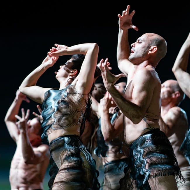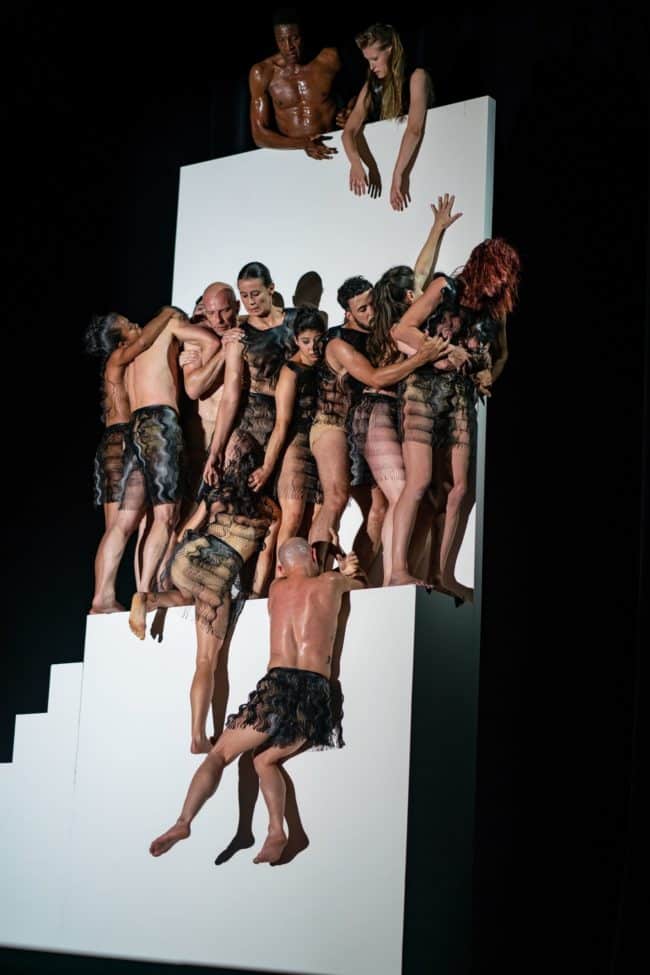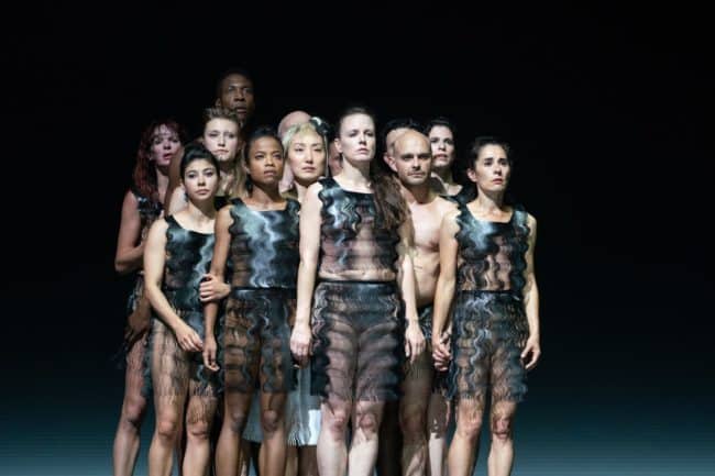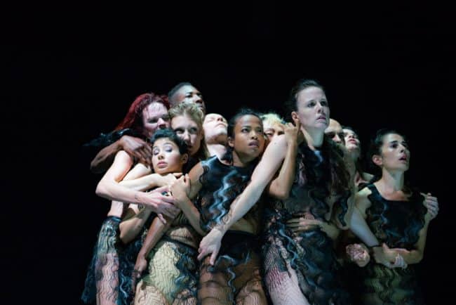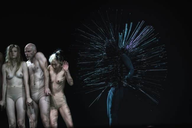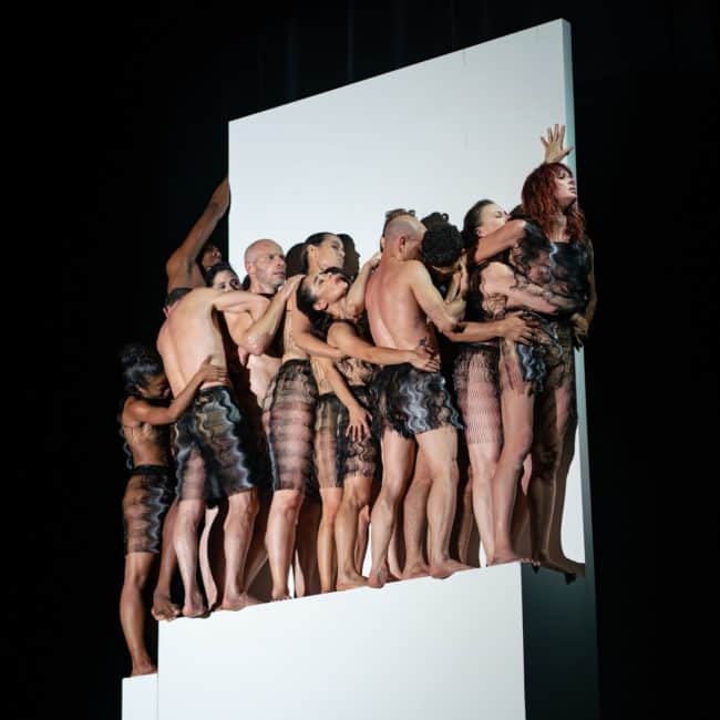 Kreatur parle du corps humain, qui, isolé ou joint à une communauté, se déforme sous la pression. Alors que perdre ou prendre le pouvoir, penser l’altérité ou se regarder soi-même, s’aimer et se détester sont les intuitions de départ de cette pièce, la visite d’une ancienne prison de la Stasi à Berlin a confirmé à Sasha Waltz et ses danseurs des points d’appui mémoriels, sensitifs pour travailler le confinement inhumain, la station debout, le continuel éveil. La chorégraphe évoque un monde où les constrictions autant physiques que physiologiques nous obligent au mouvement. Le corps devient le symbole d’une lutte, pris en étau entre des sensations concrètes d’emprisonnement et des sentiments de libération. Pour chercher ce qu’il y a de sombre et de lumineux en chacun, elle a souhaité travailler en collaboration avec de grands artistes, pour les costumes, l’espace et ses reflets, les sons métalliques et concrets… Tout cela compose Kreatur : un univers minimaliste de noir et blanc, où seule la peau et le vivant font couleur et où les figures en présence sont des images d’un futur possible, à la fois familières et inconnues.